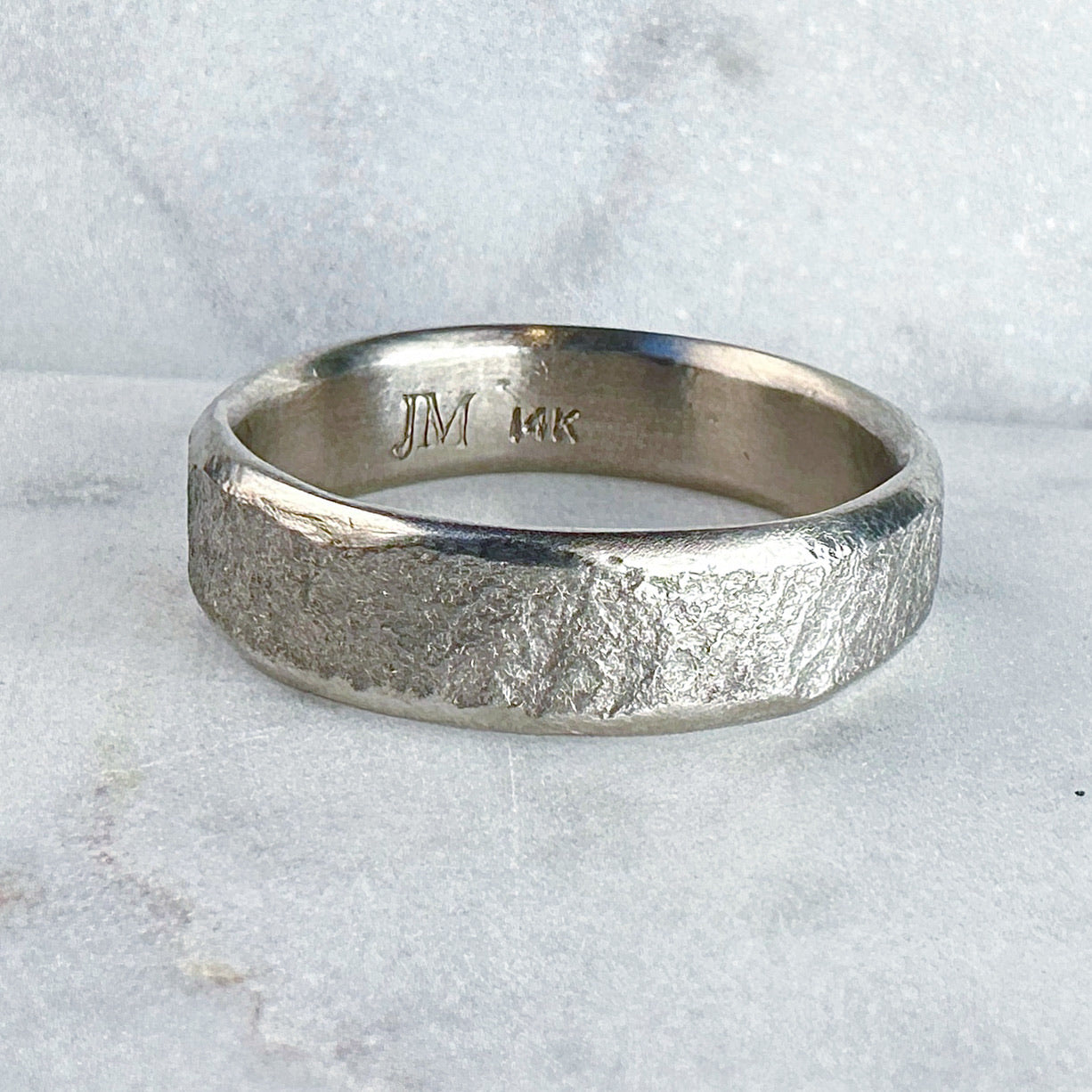 Our signature granite texture looks great on so many different precious metals, and this 14k palladium white gold ring is a great example of that.