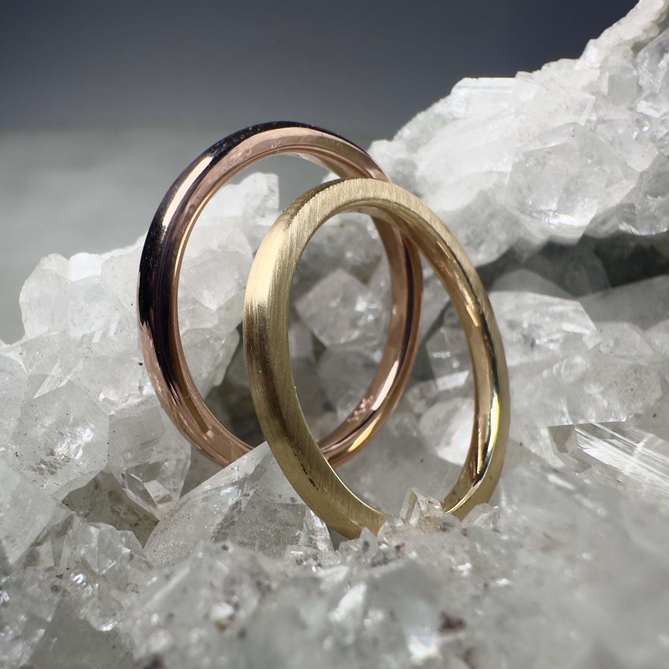 Highly polished 14k rose gold and matte-finished yellow gold bands were exactly what our minimalist-loving clients needed!