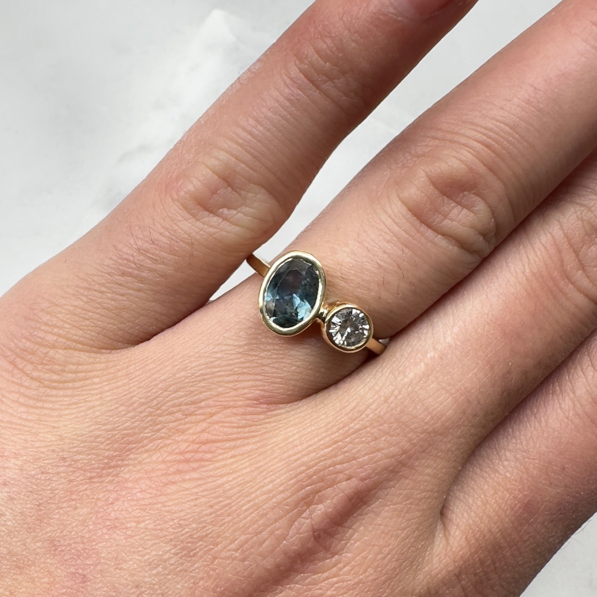 Made with our client’s grandmother’s stones, this ring is a minimalist example of this on-trend style.