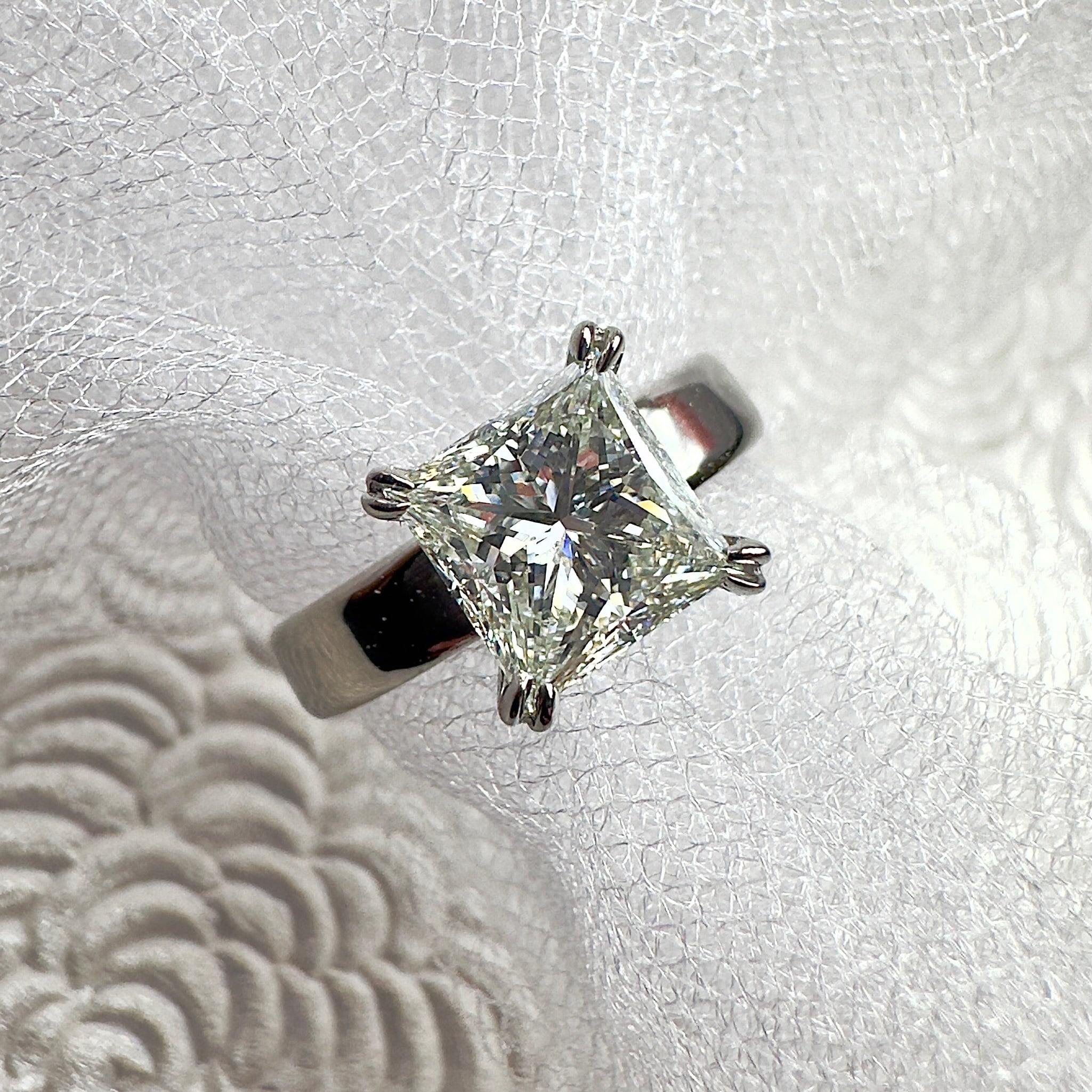 This stunning natural, earth-mined diamond was set in platinum with double prongs and a wide band.