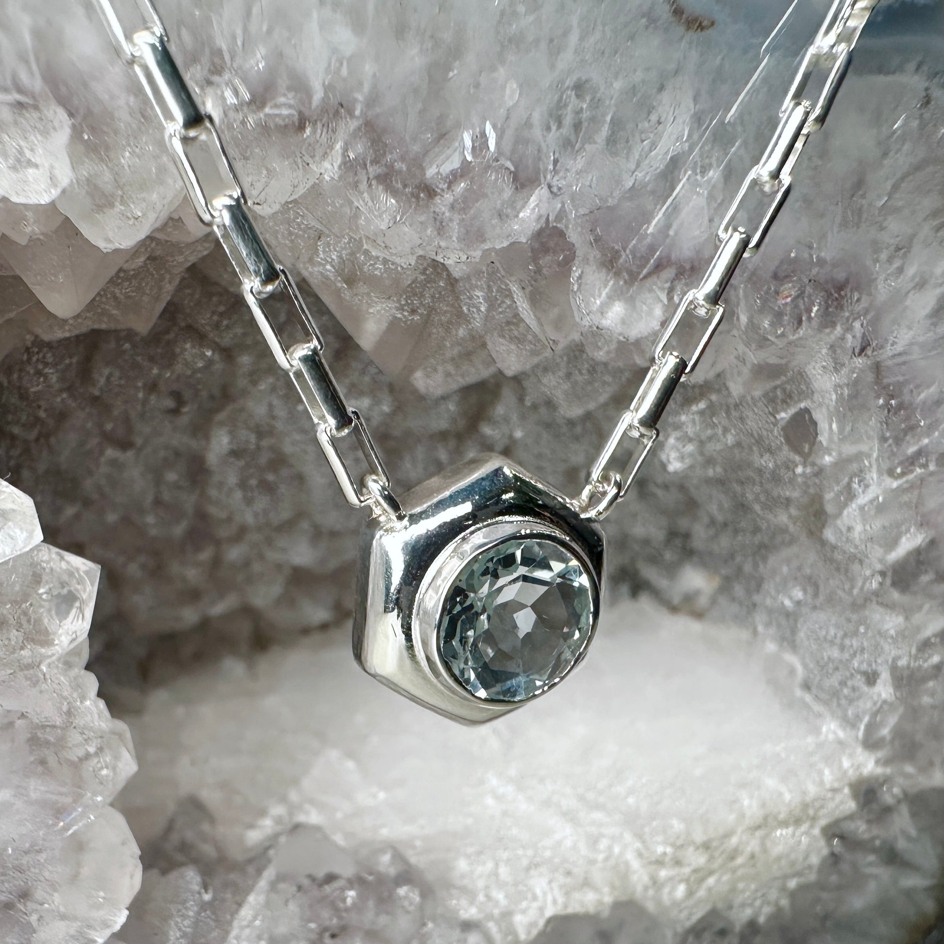 Aquamarine Hexagon Necklace | Sterling Silver