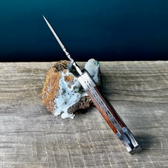 Built in the USA, this utility knife combines a 3-inch Damascus steel blade with a handcrafted walnut handle. The layered steel construction provides exceptional edge quality and distinctive visual character, while the natural wood grip ensures comfortable handling and lasting durability for your kitchen and everyday cutting needs.