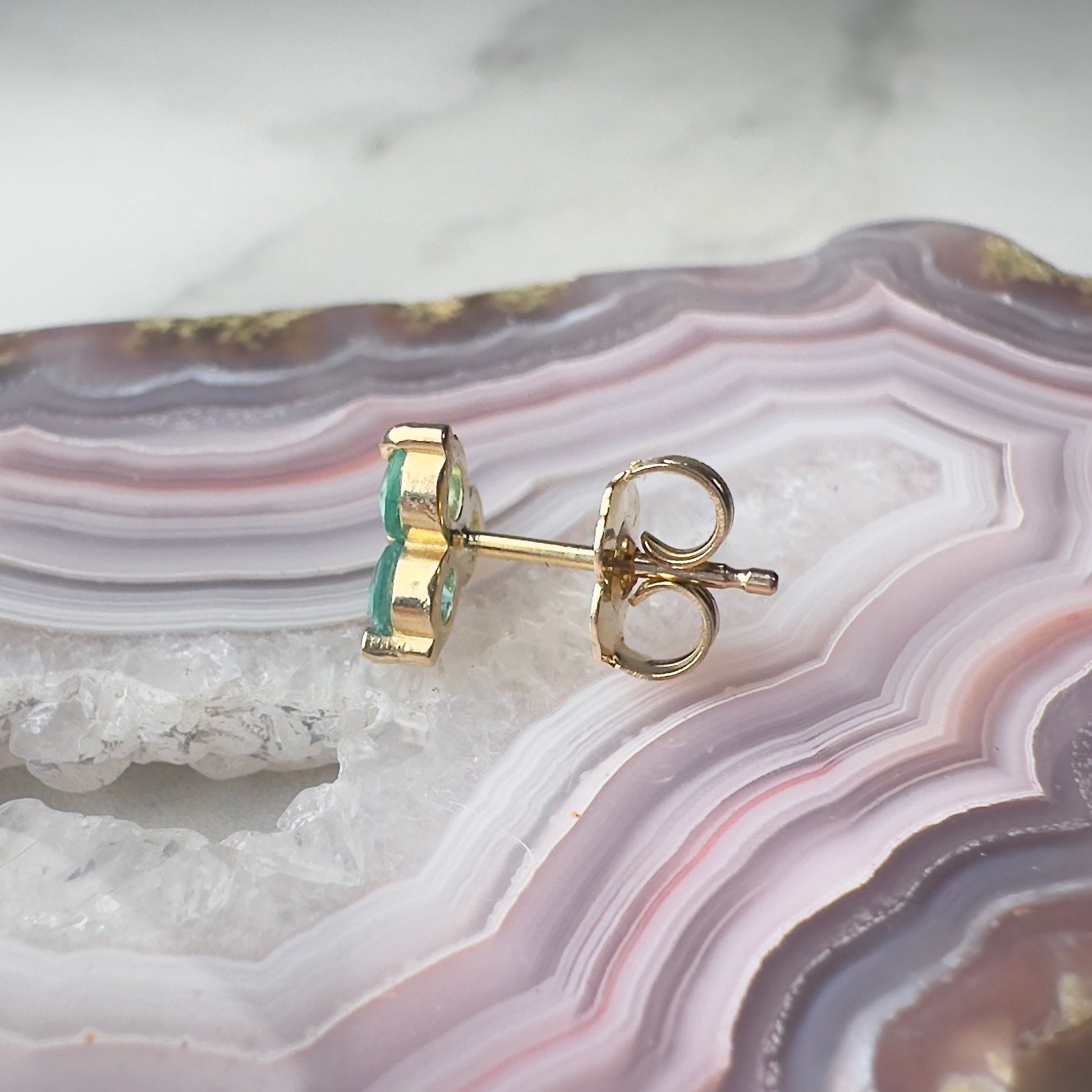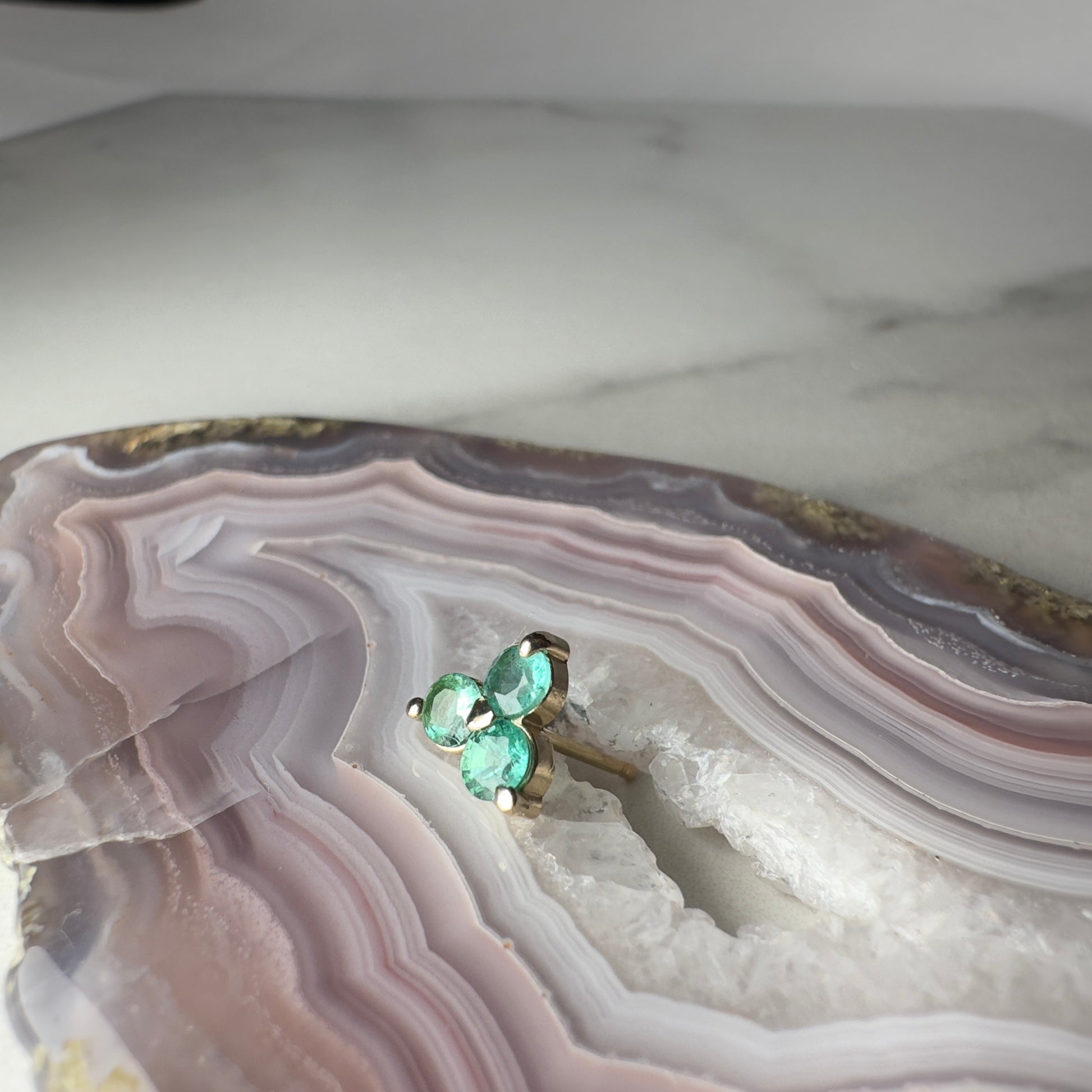 Emerald Trio Single Stud Earring | 14k Yellow Gold