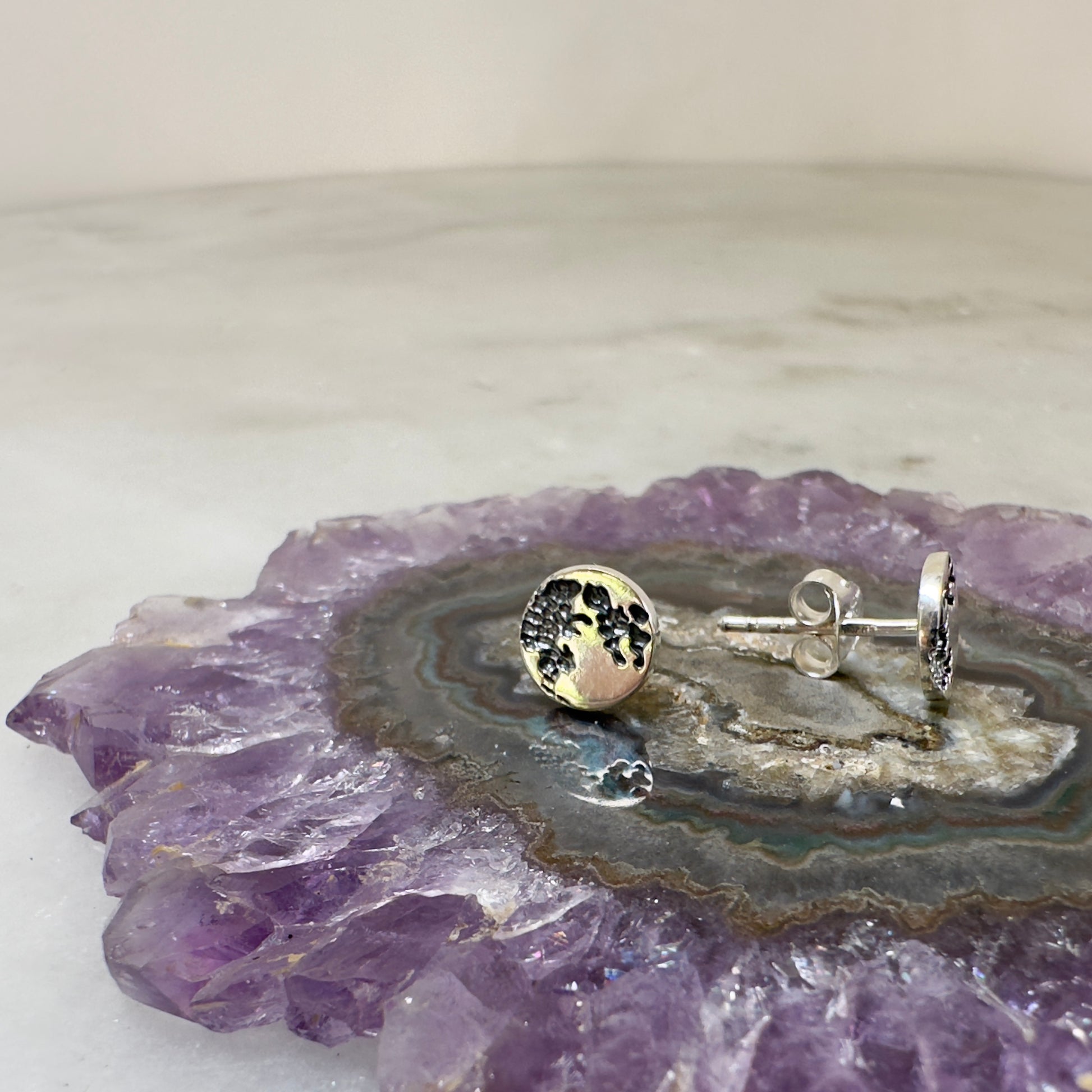 Illuminate your style with our Full Moon Sterling Silver Stud Earrings. These celestial beauties capture the serene allure of a full moon, bringing a touch of cosmic wonder to your everyday wear. Handcrafted with care in our Denver studio, each pair features a realistic full moon texture that's sure to have you over the moon!