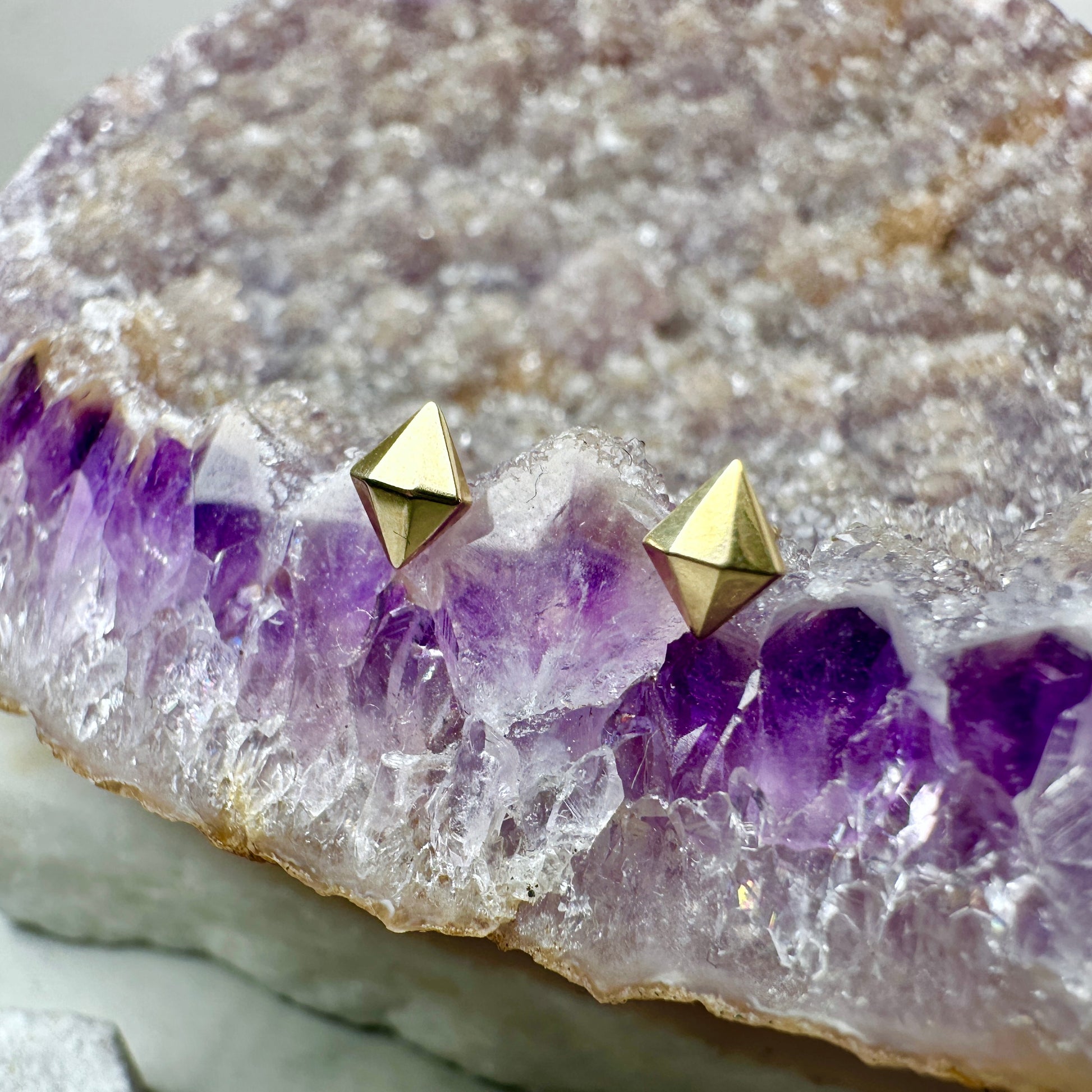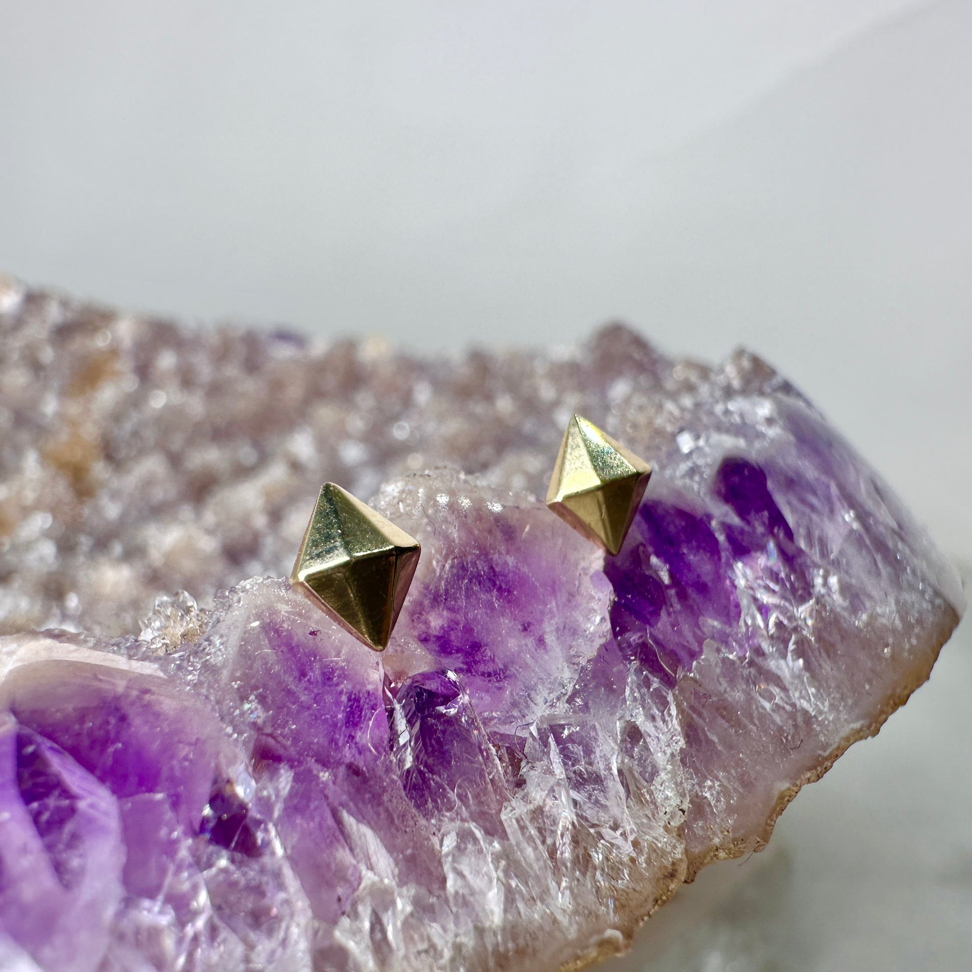 Geometric Diamond Shaped Stud Earrings | 14k Yellow Gold