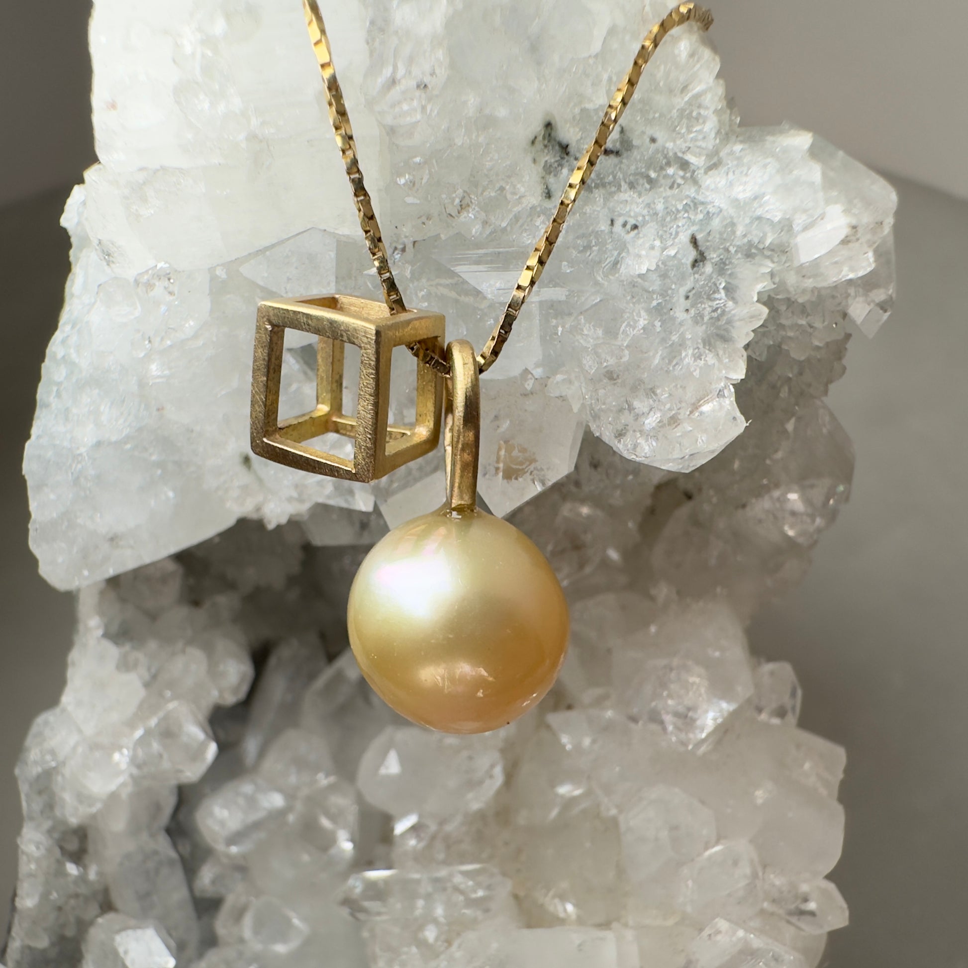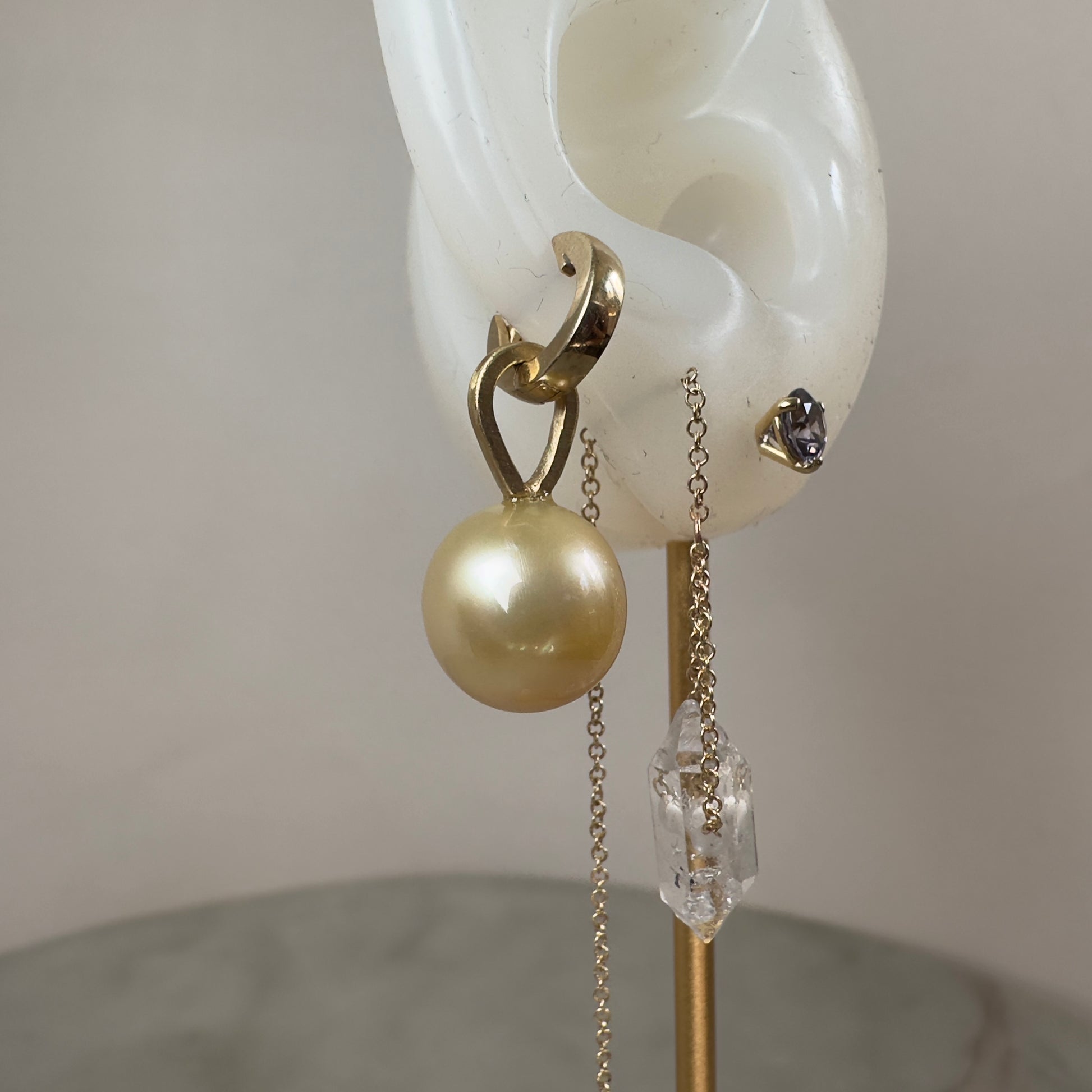 This isn’t your grandmother’s pearl. This gorgeous charm feature a natural Golden South Sea pearl. Its unisex aesthetic defies expectations, merging raw luxury with versatile design.
