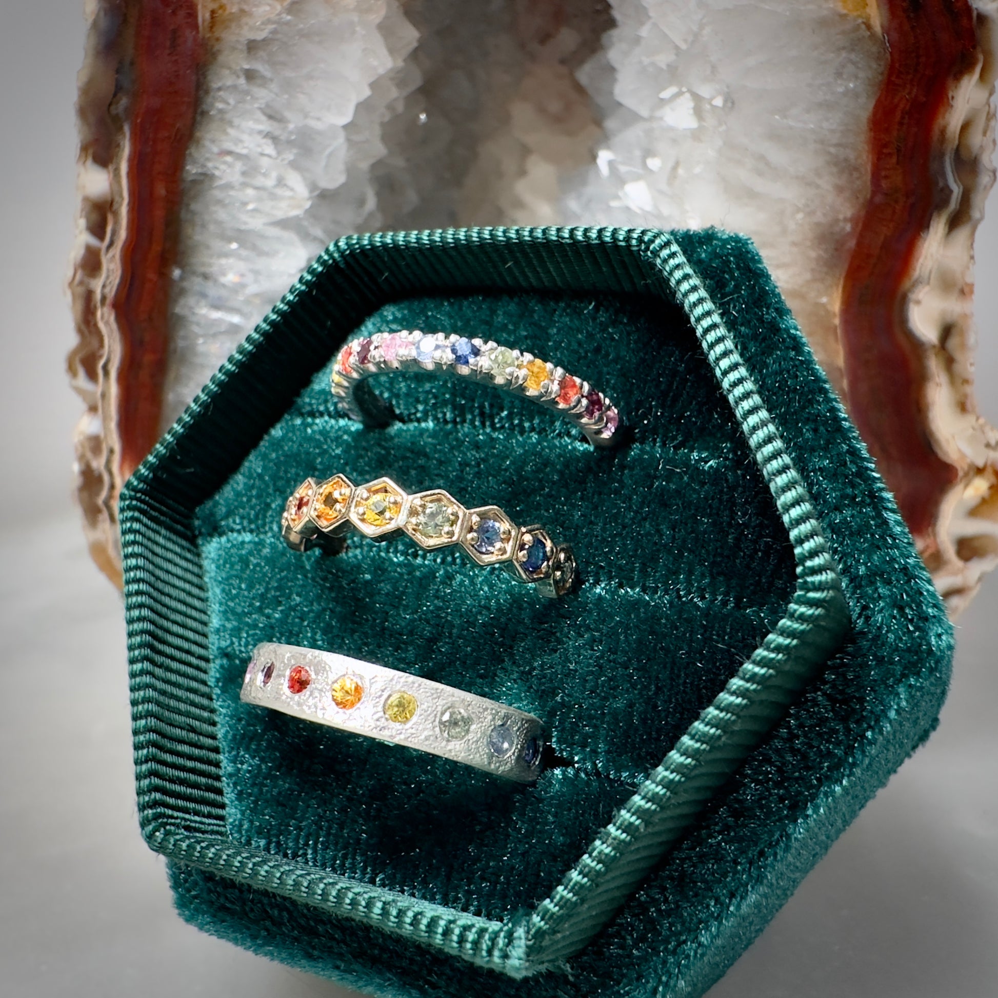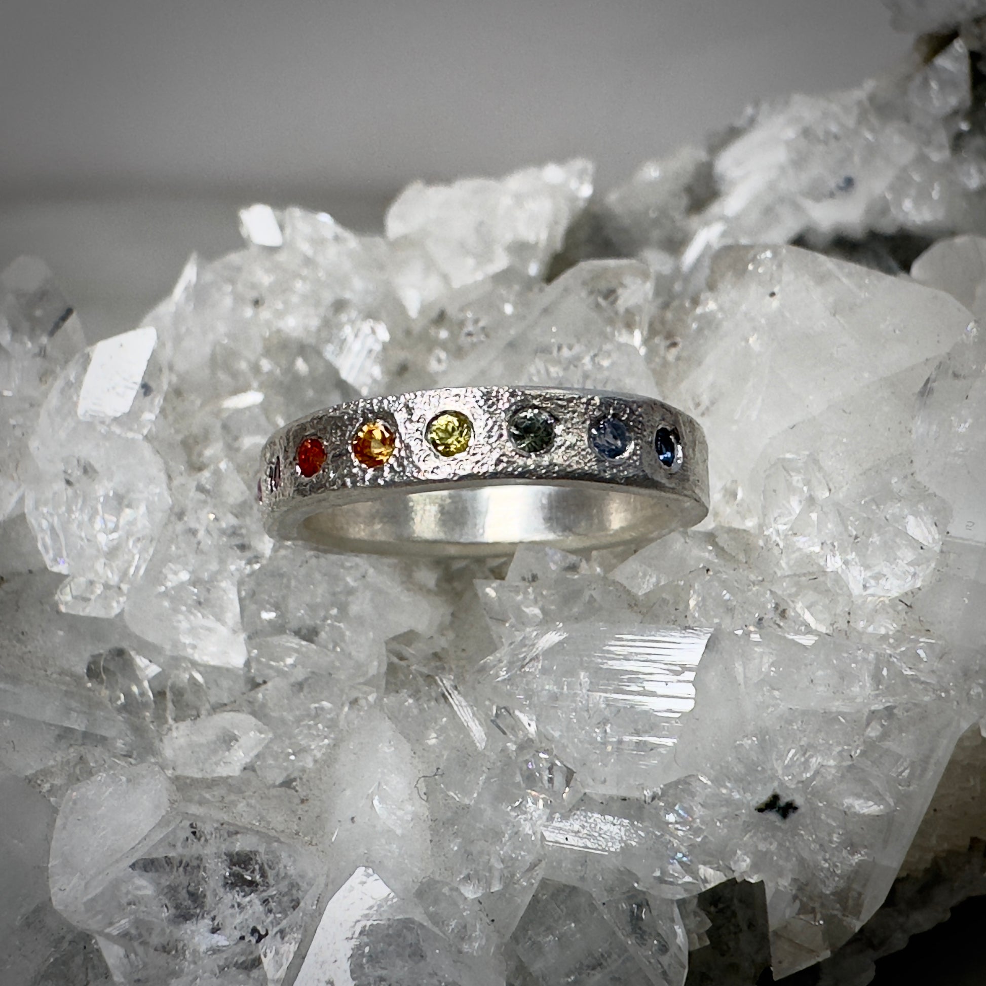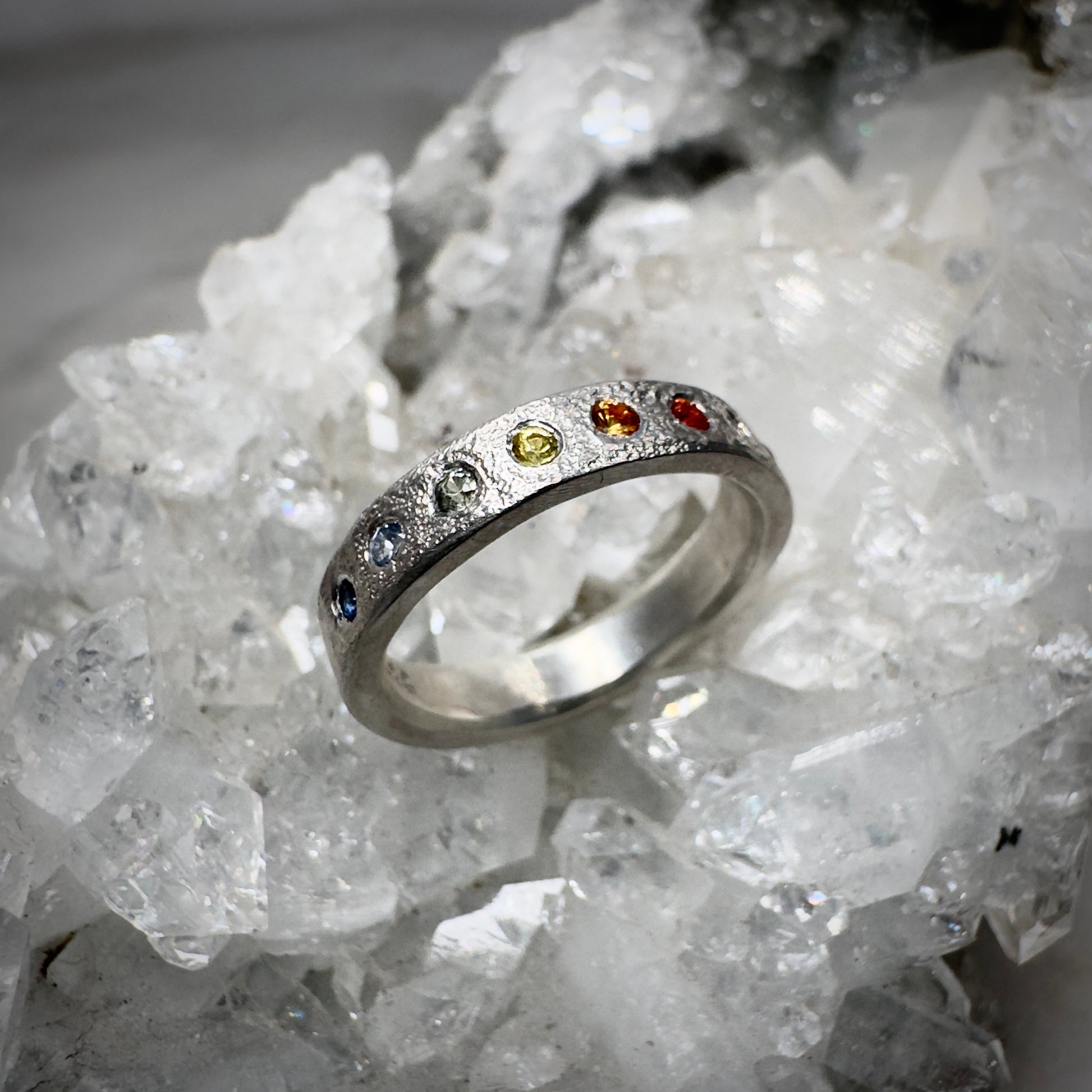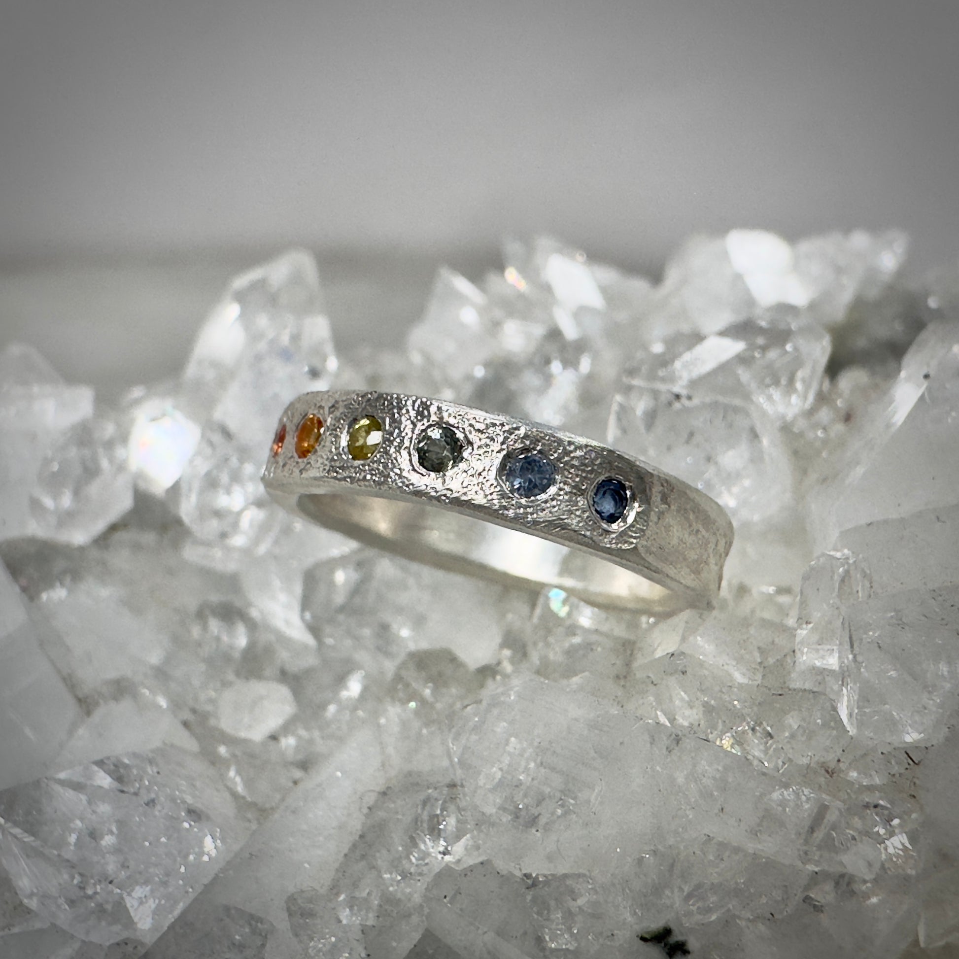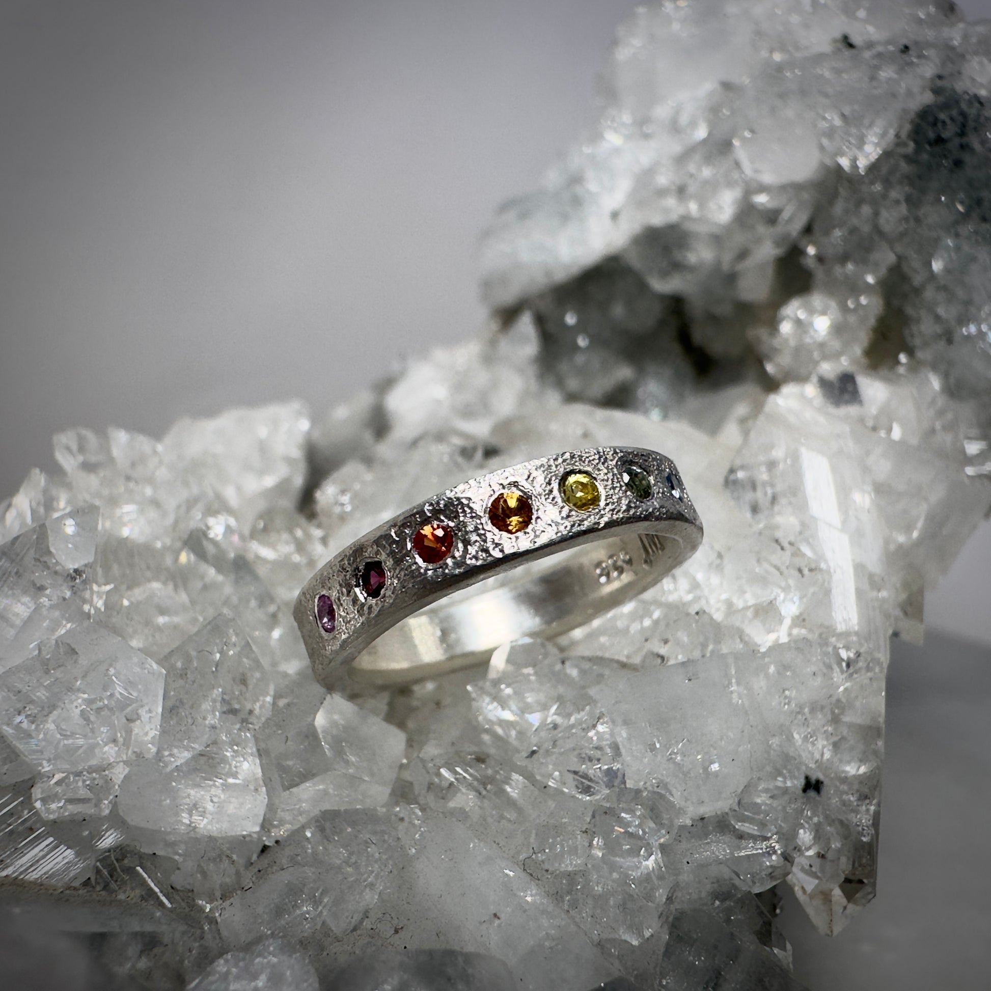Granite Band with Rainbow Sapphires | Sterling Silver