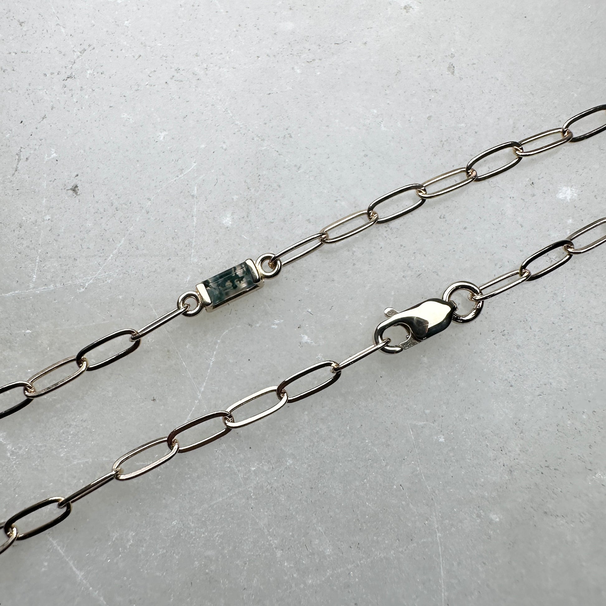Moss Agate Paperclip Bracelet | 14k Yellow Gold