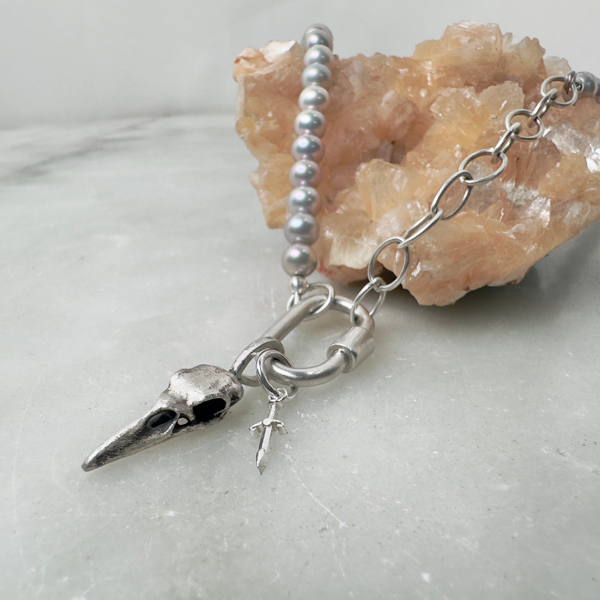 Grey Pearl Necklace / Bracelet Wrap | Sterling Silver