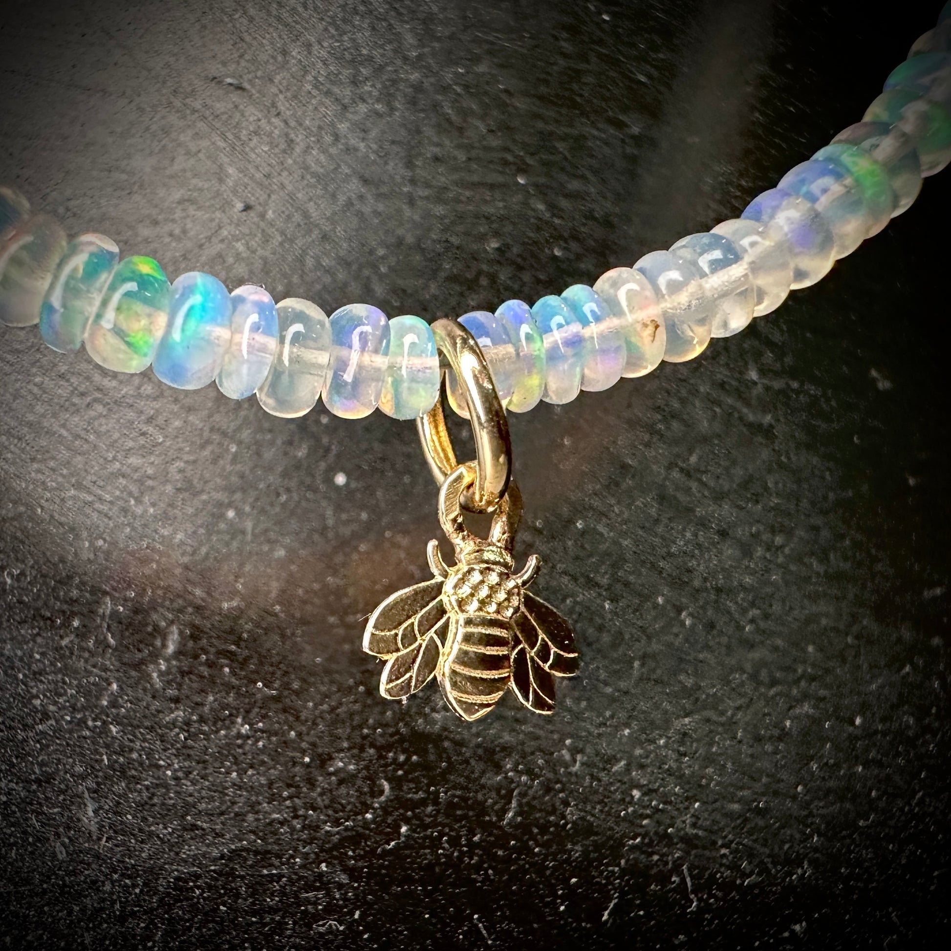 This charming honeybee, crafted from solid 14k yellow gold, makes a stunning pendant on any chain or a delightful new addition to your charm bracelet.