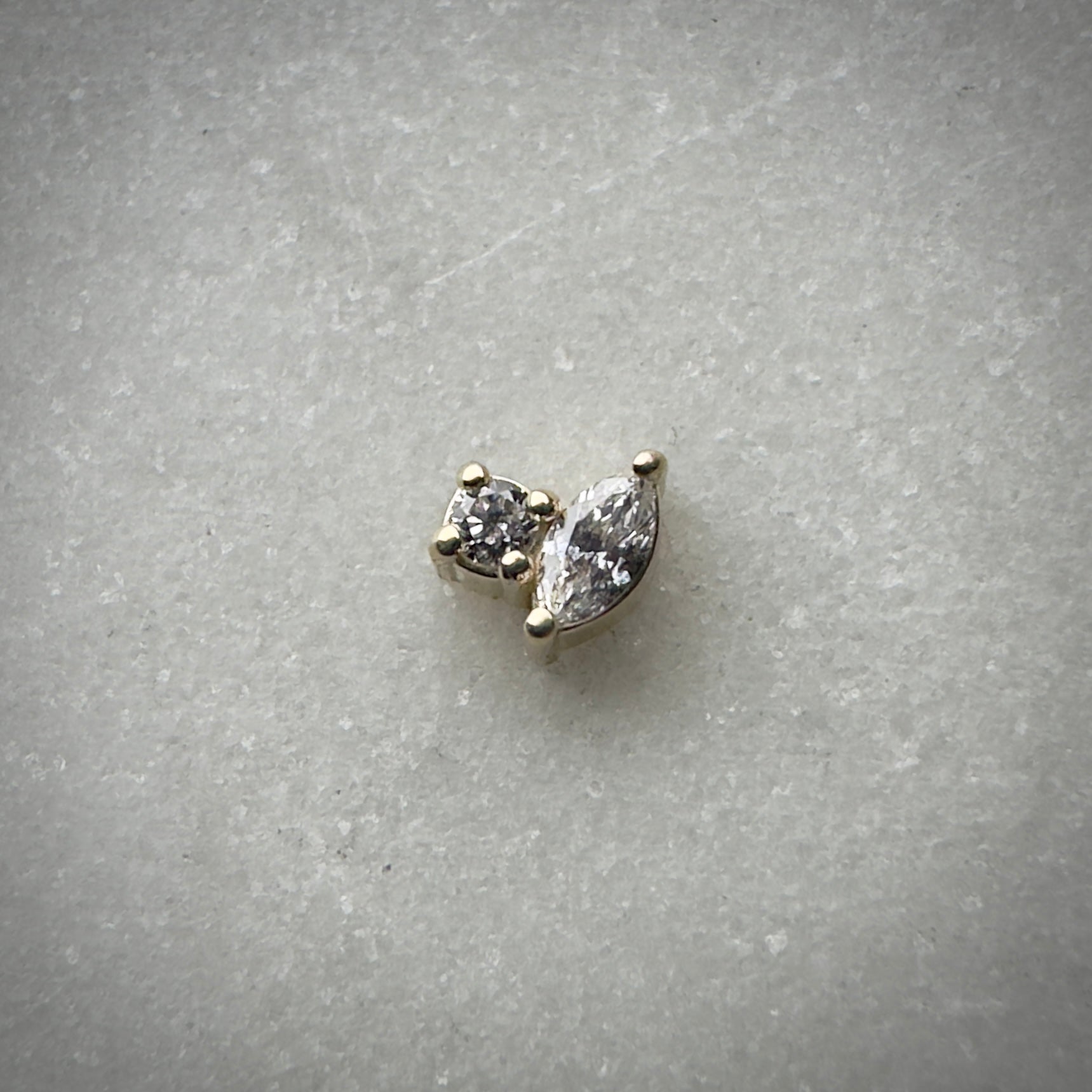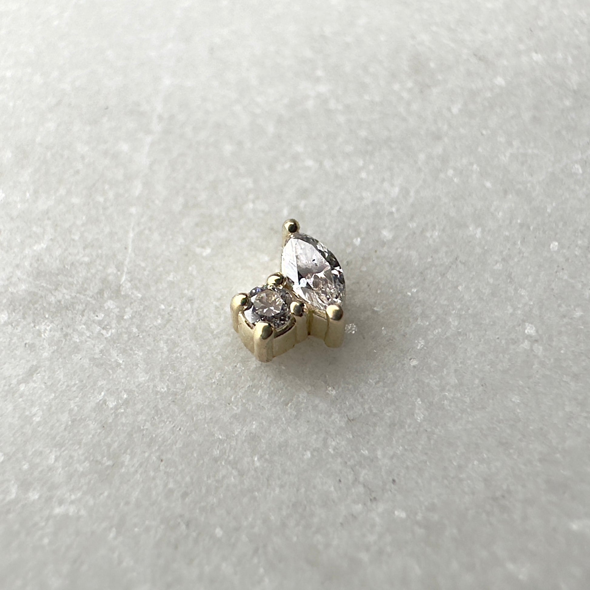 This Lab Grown Diamond Threadless Top effortlessly blends modern design with timeless elegance, featuring a threadless post made from 301 stainless steel and a 14k yellow gold setting. It showcases two beautiful lab grown diamonds—a round and a marquise—set in a charming Toi et moi style, offering a fresh take on a classic look. Each earring is sold individually, allowing you to mix, match, or order two for a perfect pair. Crafted to be durable and hypoallergenic, this piece adds sustainable sparkle to any outfit. Elevate your jewelry collection with this stunning fine body jewelry option.