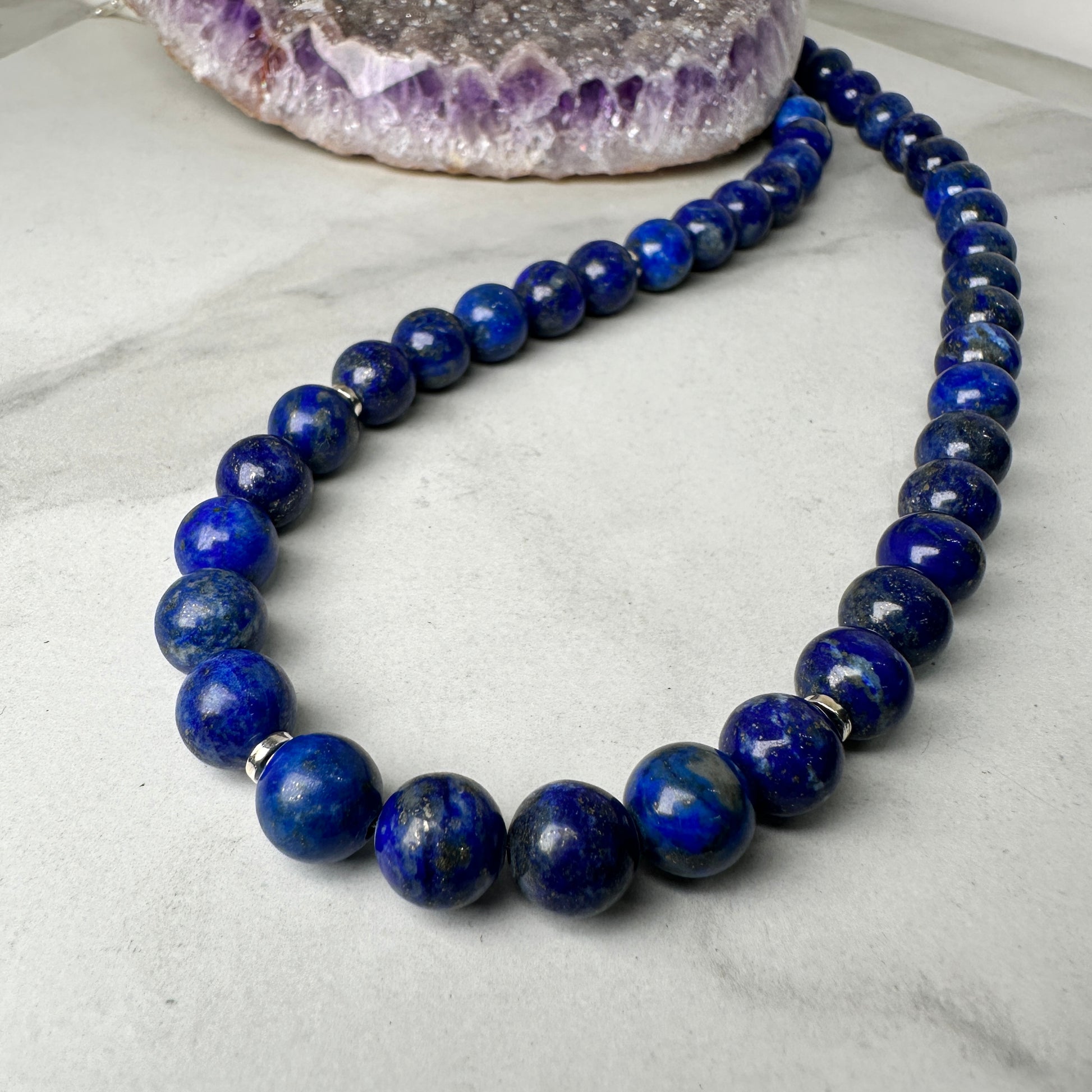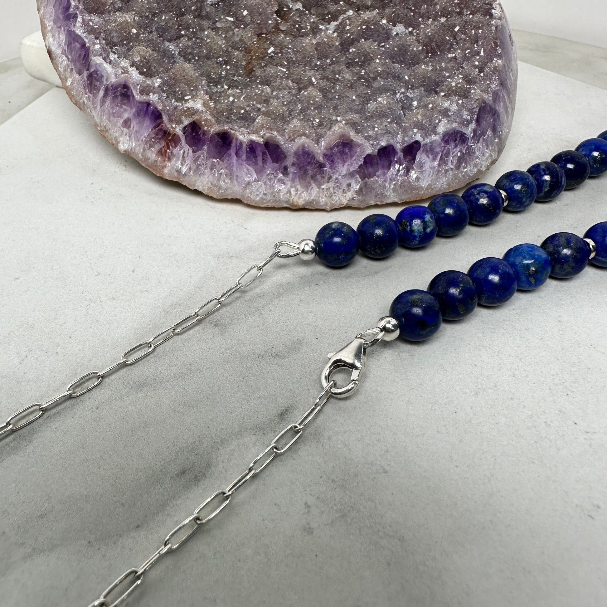 Lapis Lazuli Beaded Necklace | Sterling Silver