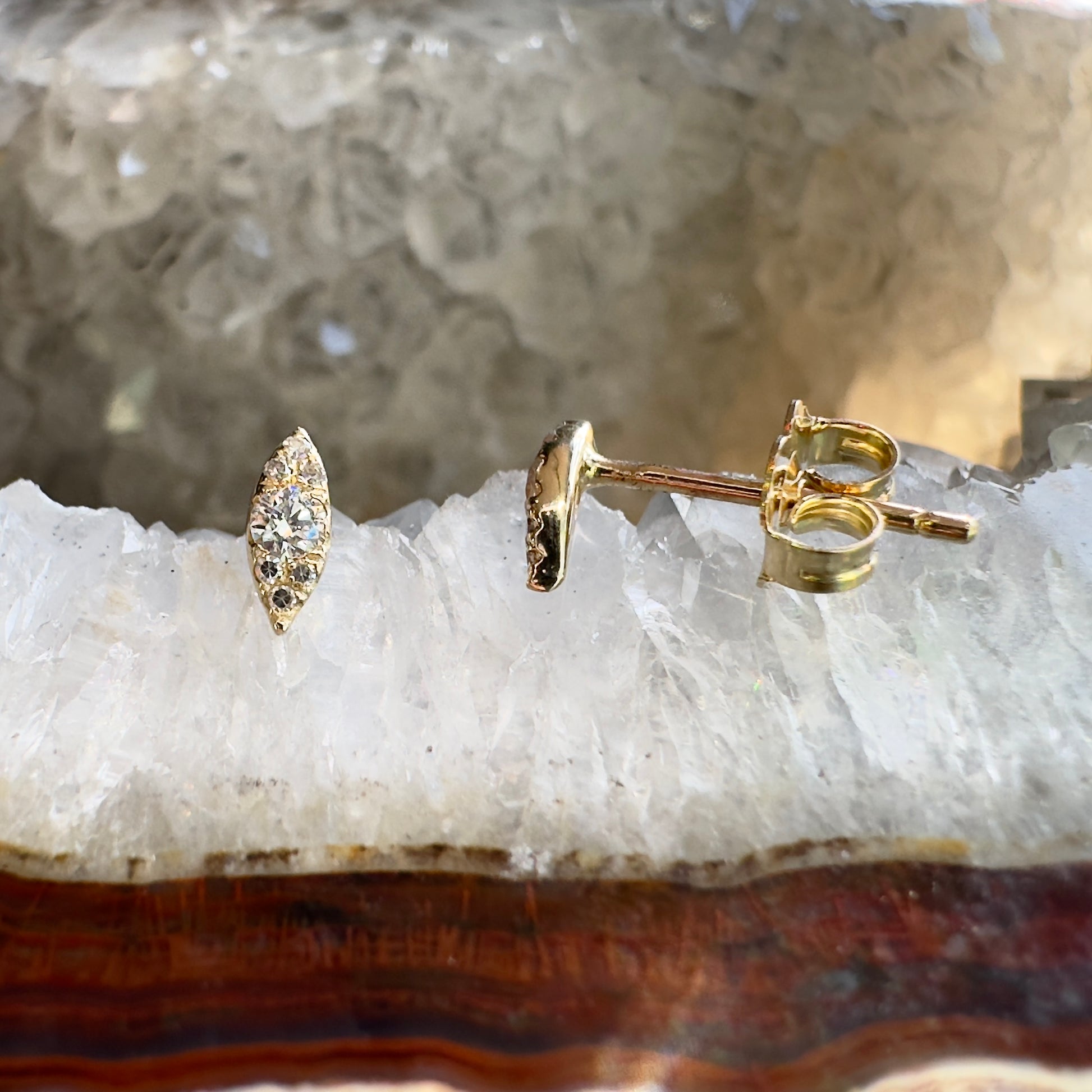 This dainty pair of stud earrings feature .20 carats of GH-color, SI-clarity, Natural diamonds that are post-consumer-recycled stones. Set in 100% recycled 14k Yellow Gold, this elegant addition to your jewelry wardrobe is an eco-conscious choice that are built to last a lifetime. A medium-sized pair of friction backs secure this pair of studs to your ear comfortably.