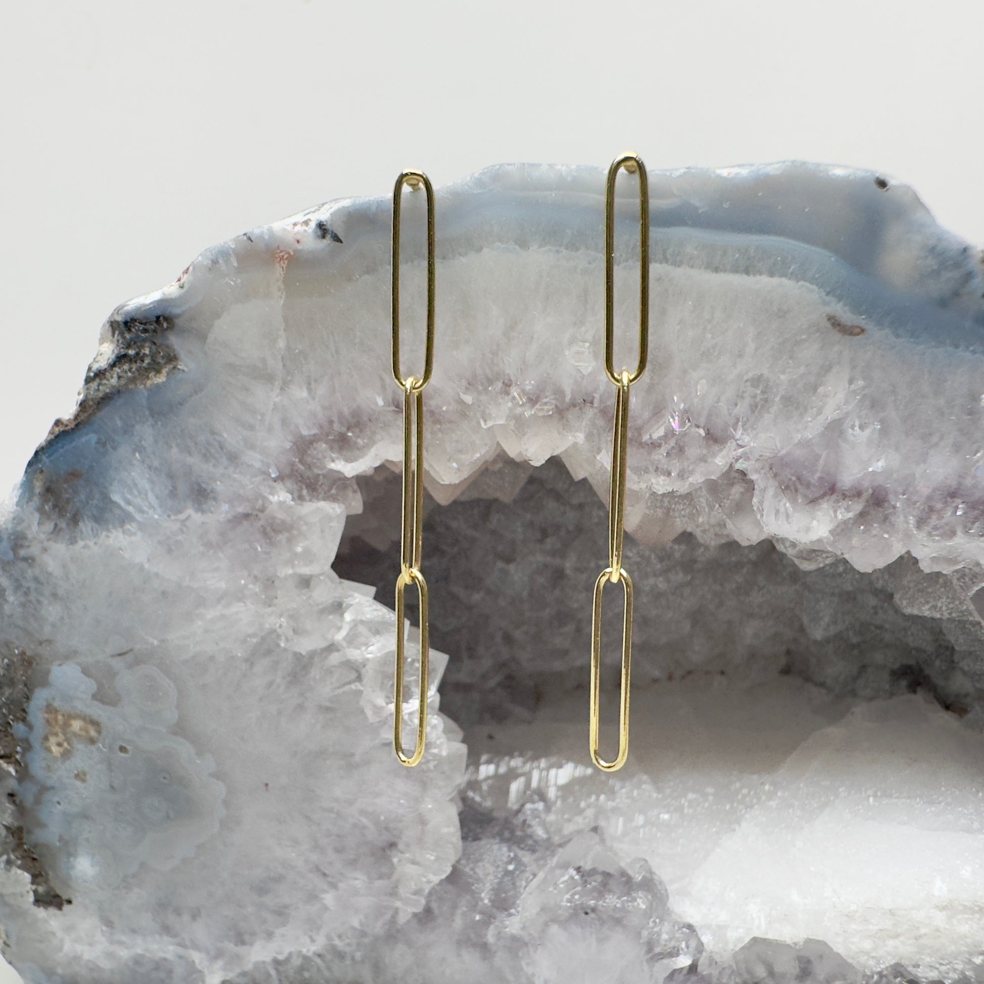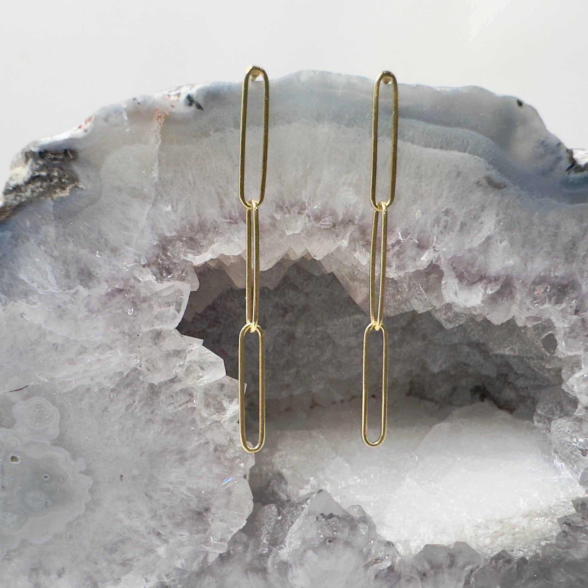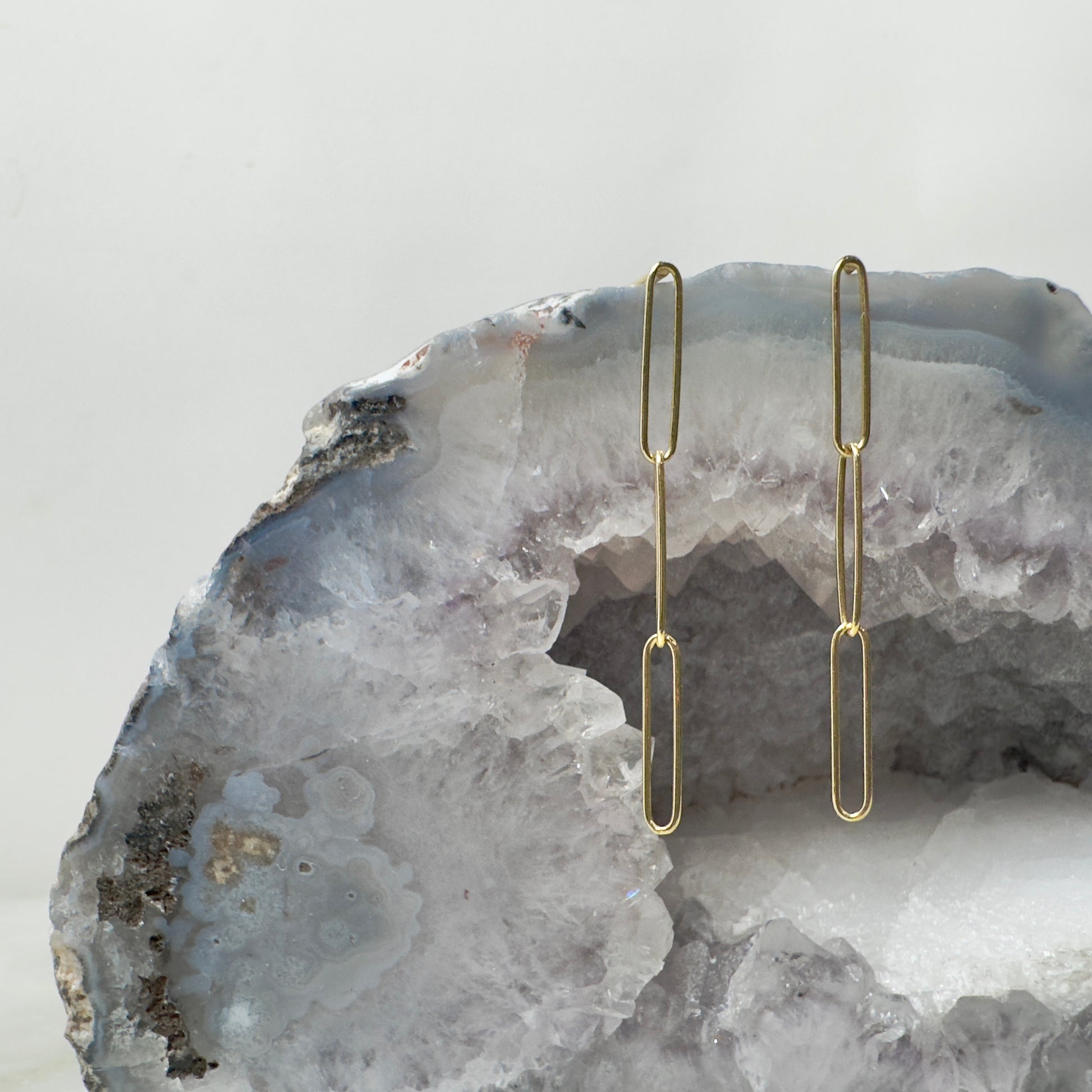 Paperclip Chain Dangle Earrings | 14k Yellow Gold