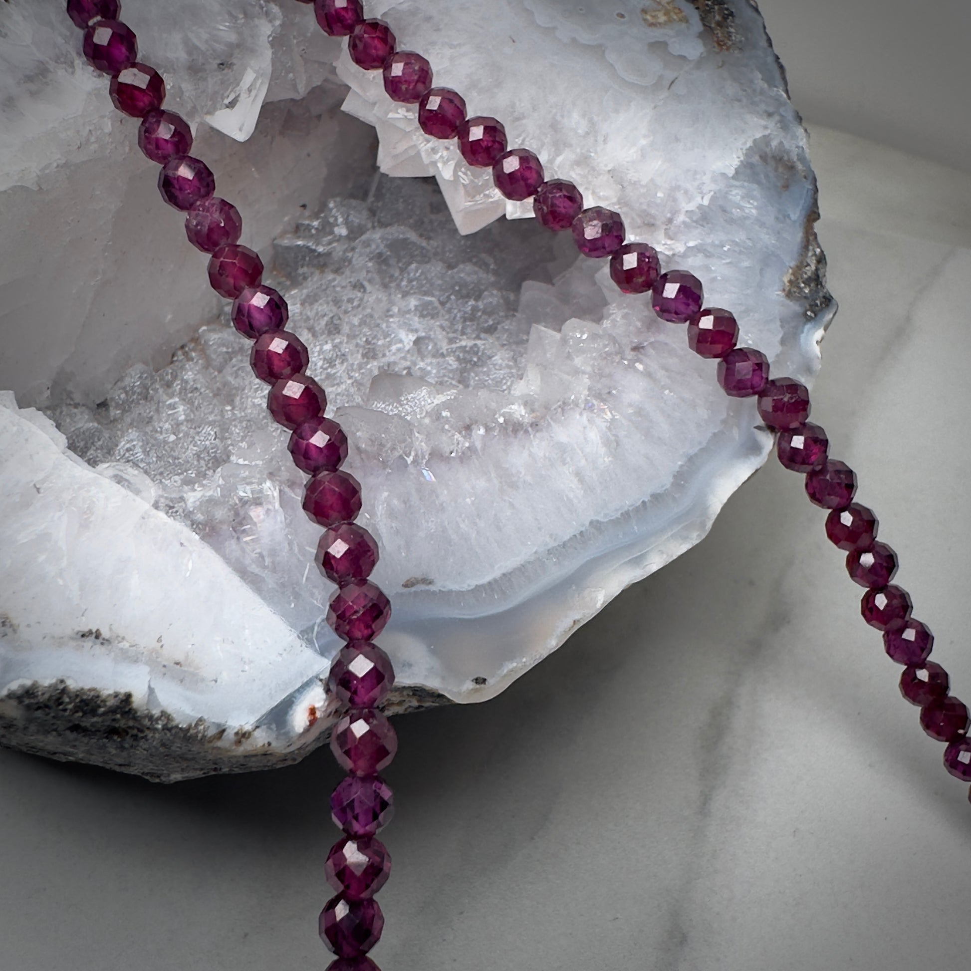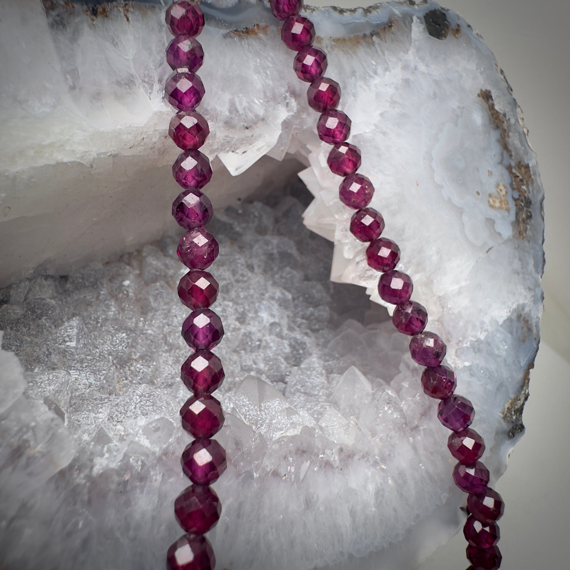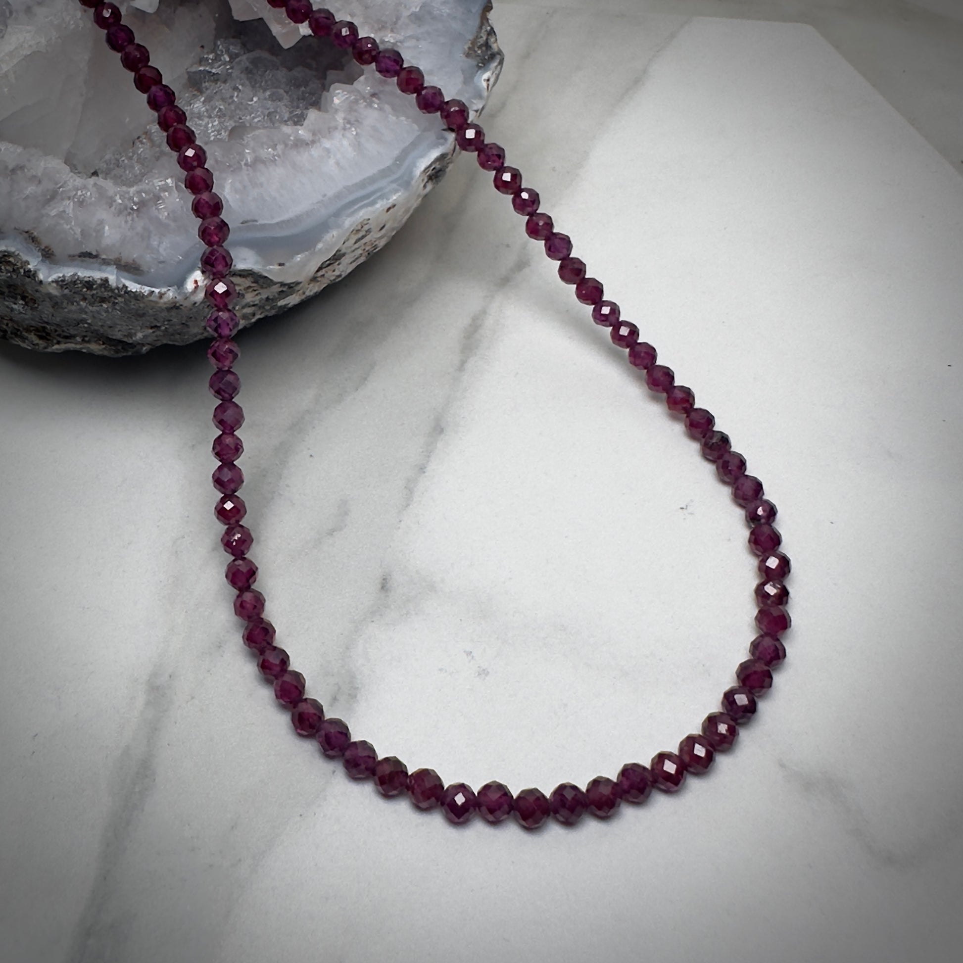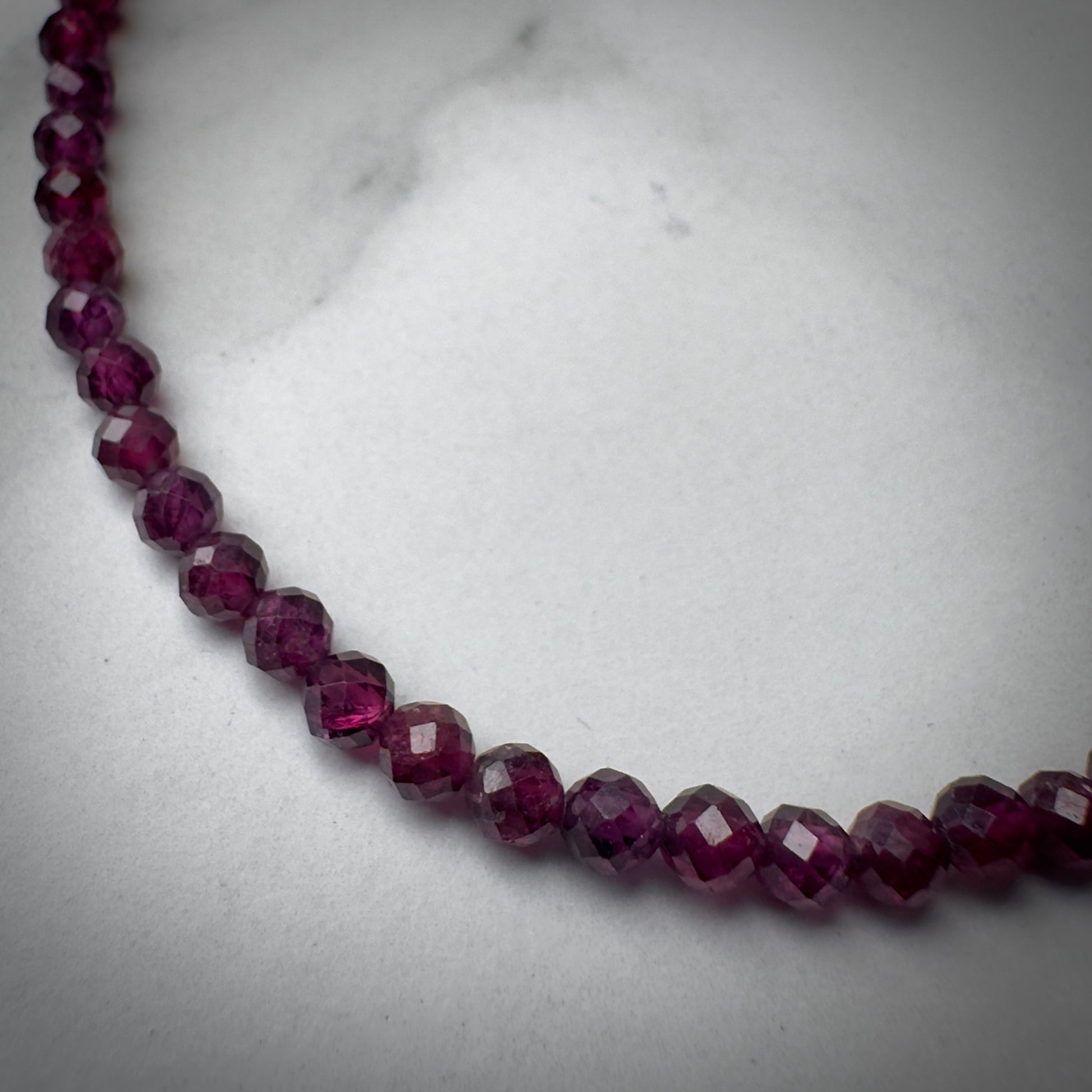 Faceted Rhodolite Garnet Beaded Necklace | Sterling Silver