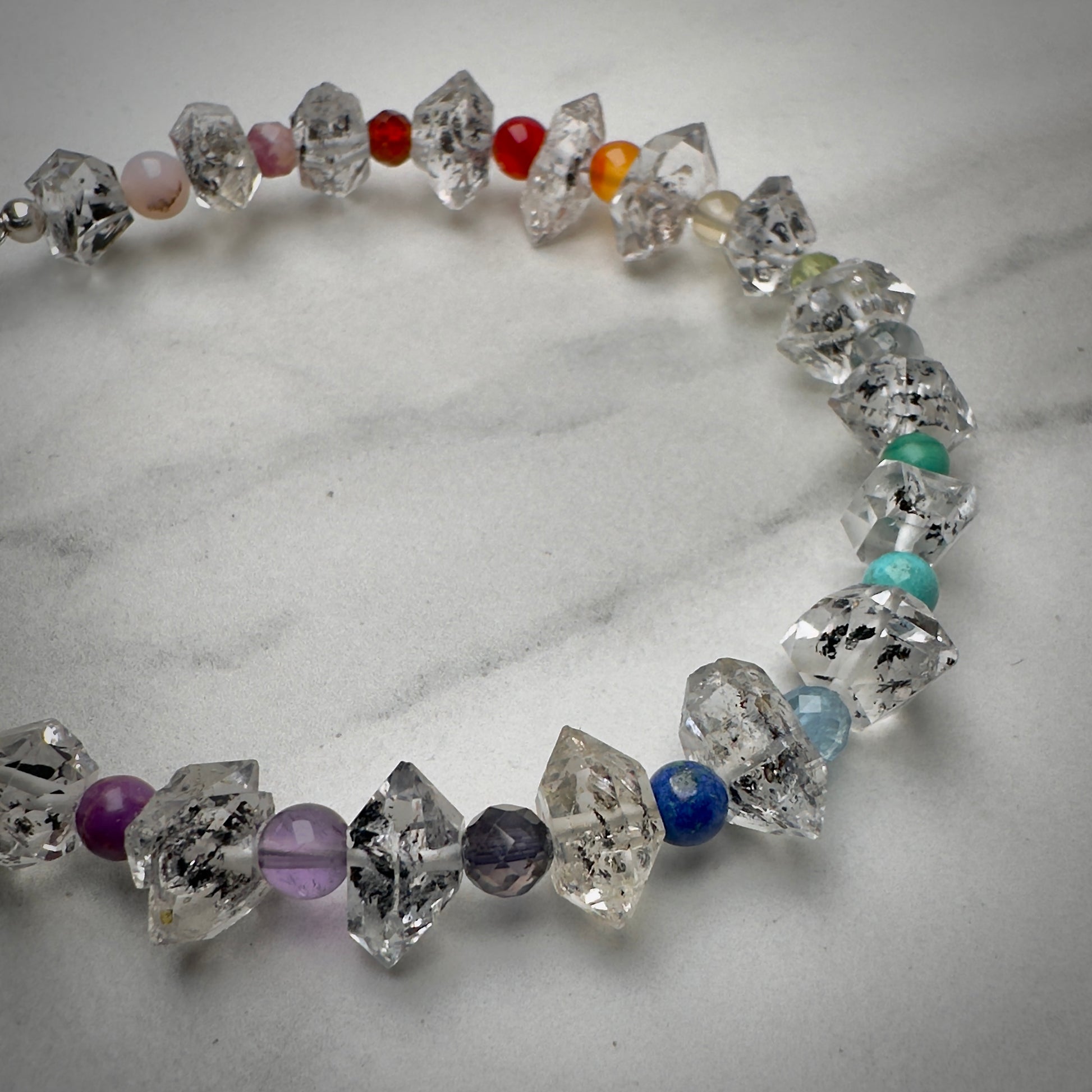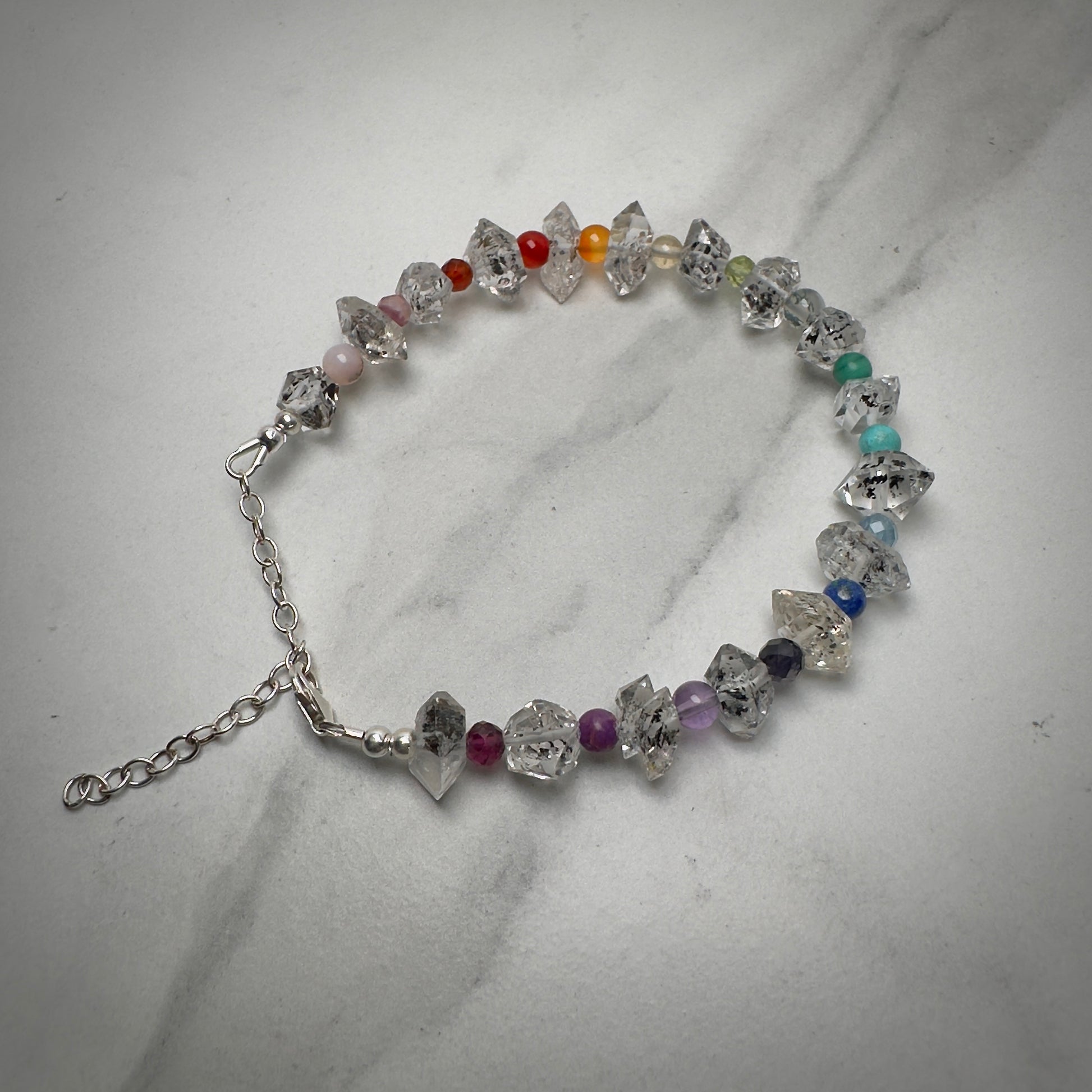 Rainbow Gemstone and Quartz Beaded Bracelet | Sterling Silver | Adjustable