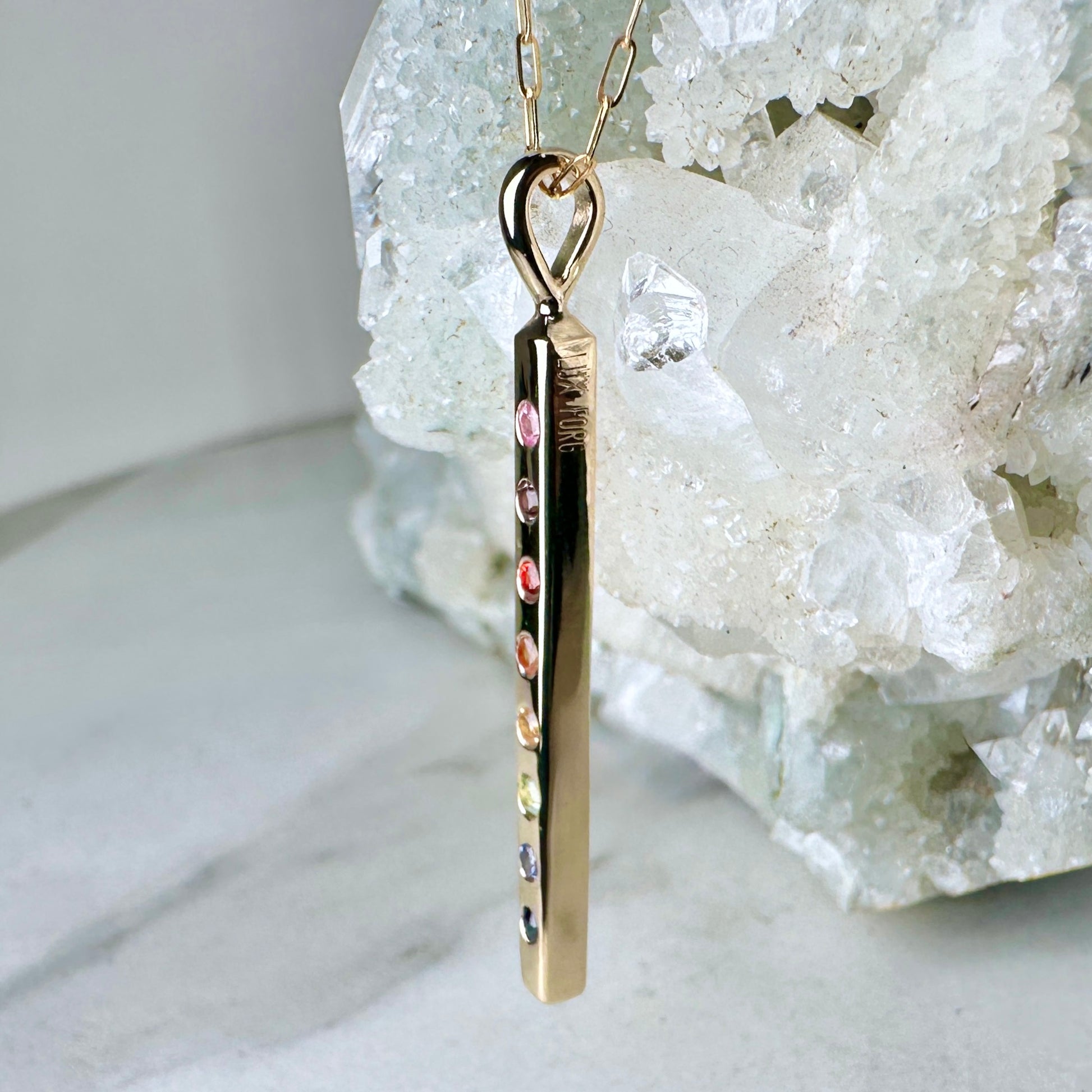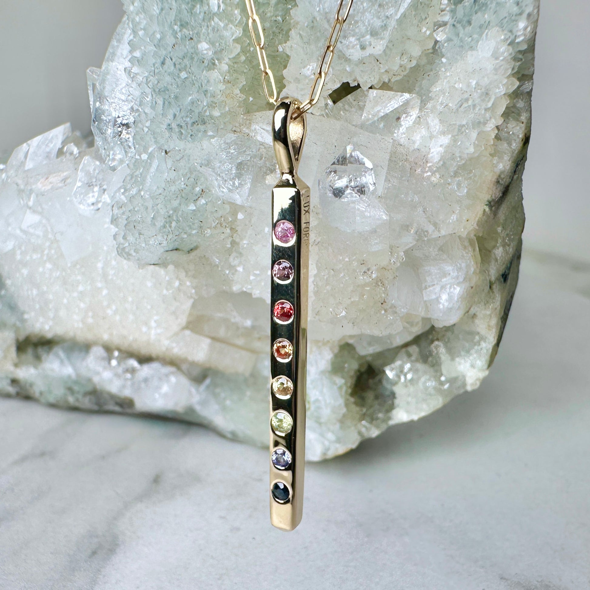 Rainbow Sapphire Bar Charm Pendant | 14k Yellow Gold