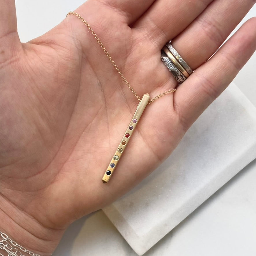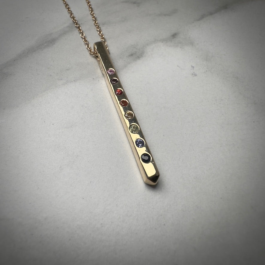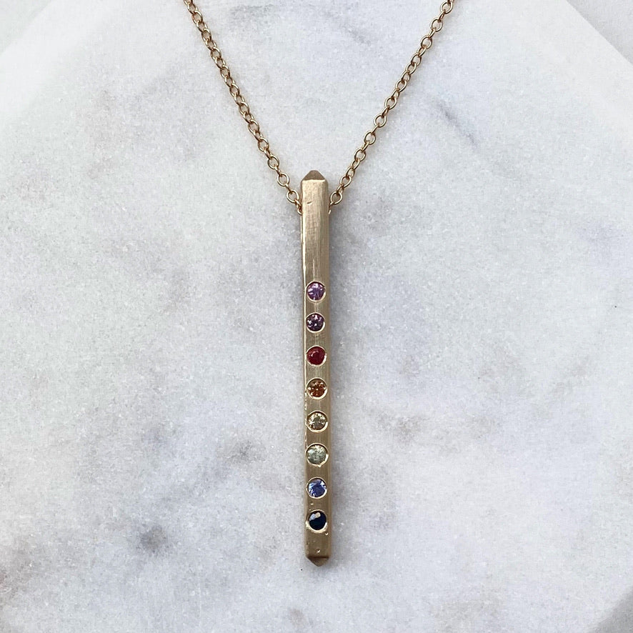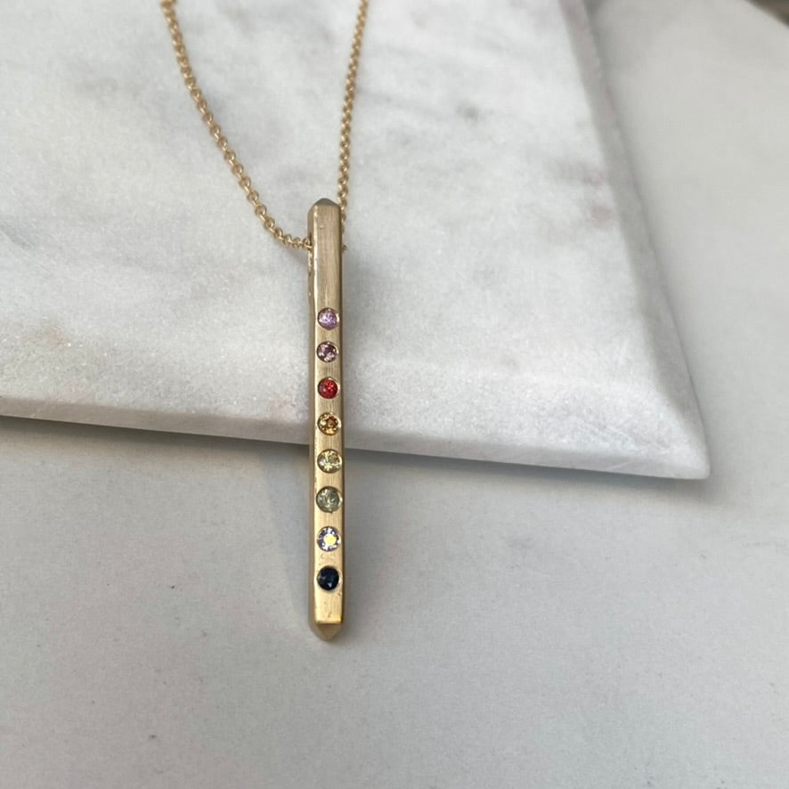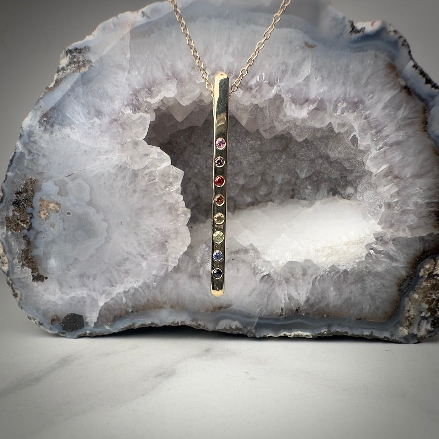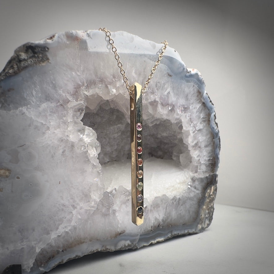 Rainbow Sapphire Bar Pendant | 14k Yellow Gold