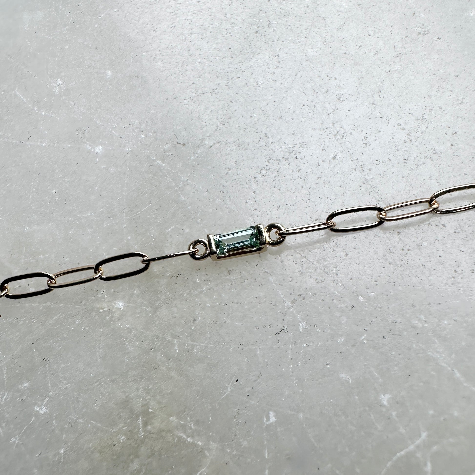 Seafoam Tourmaline Paperclip Bracelet | 14k Yellow Gold