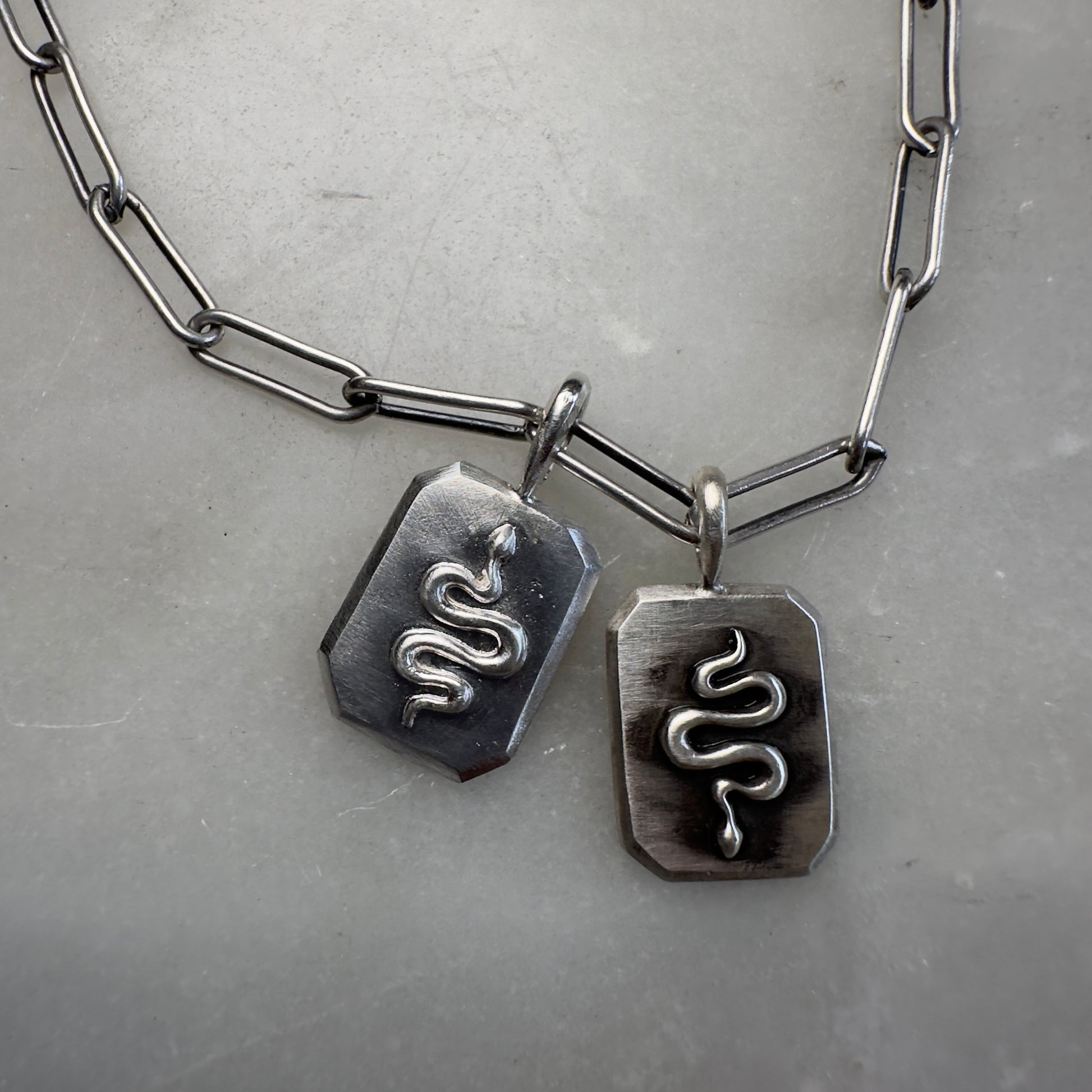 Layer it or wear it by itself — there is no incorrect way to wear our edgy and unique serpent charm pendants! Wear it as a striking pendant on your favorite chain and add it to your charm collection for a personalized necklace. Or simply stack with other pendants for a curated, layered look.