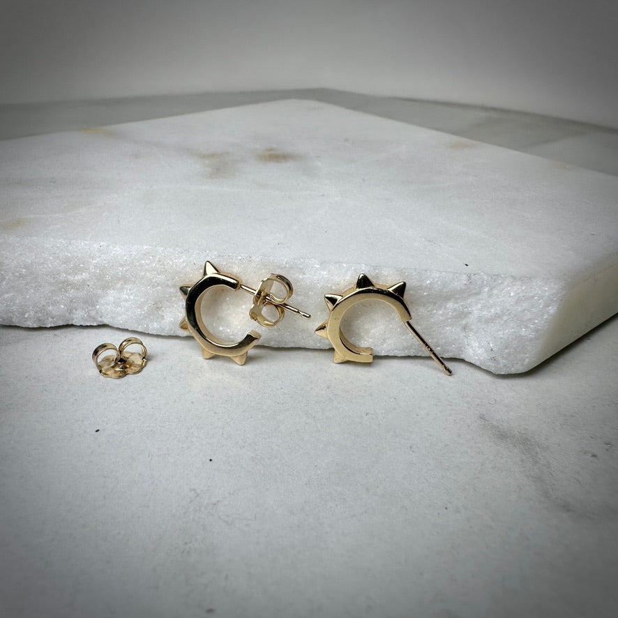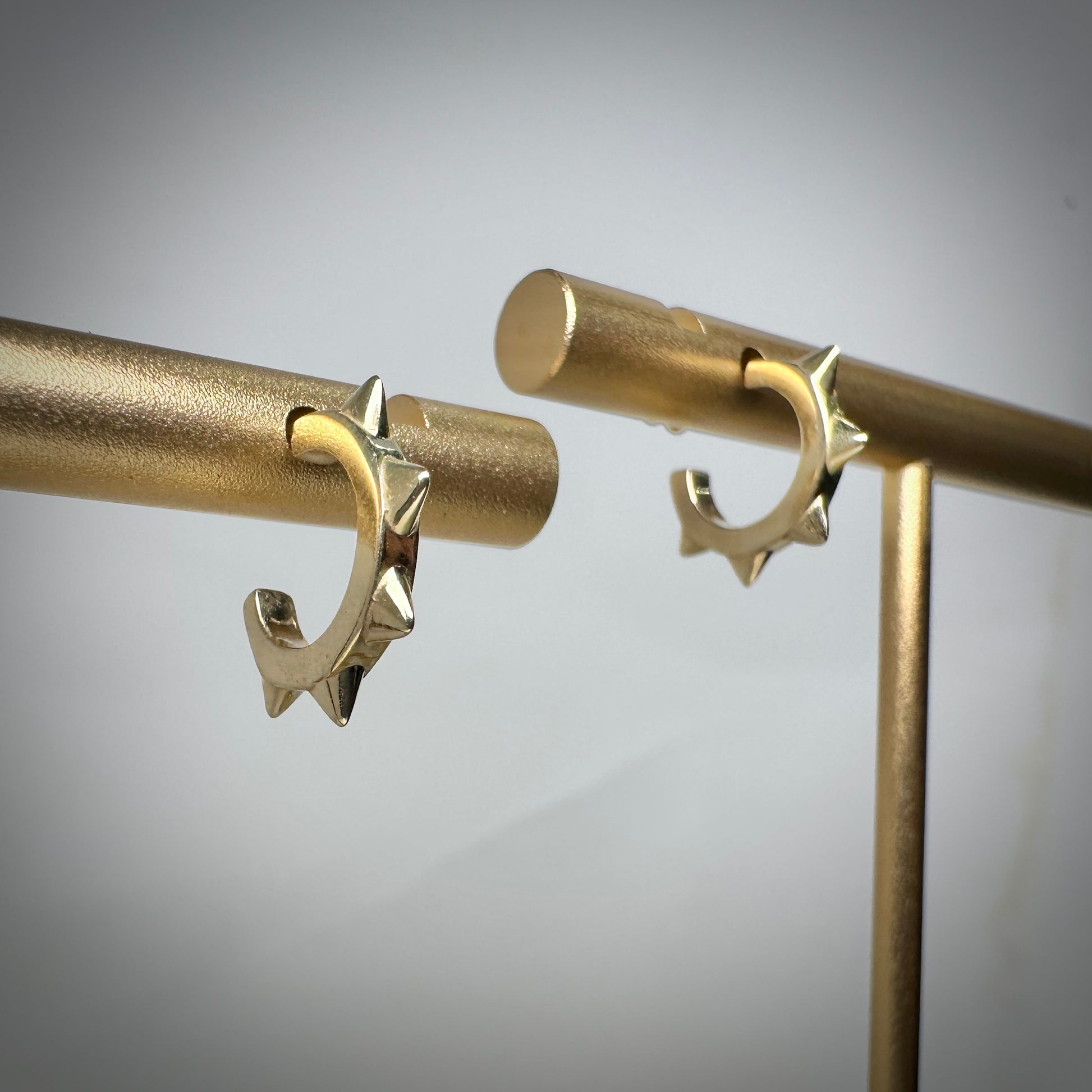 Transform your everyday style with these solid 14k yellow gold Spiked Hoop Earrings. Their striking yet adaptable design delivers a bold touch to any outfit while being lightweight enough for comfortable all-day wear. Ideal for infusing a modern, edgy look to your earring collection.