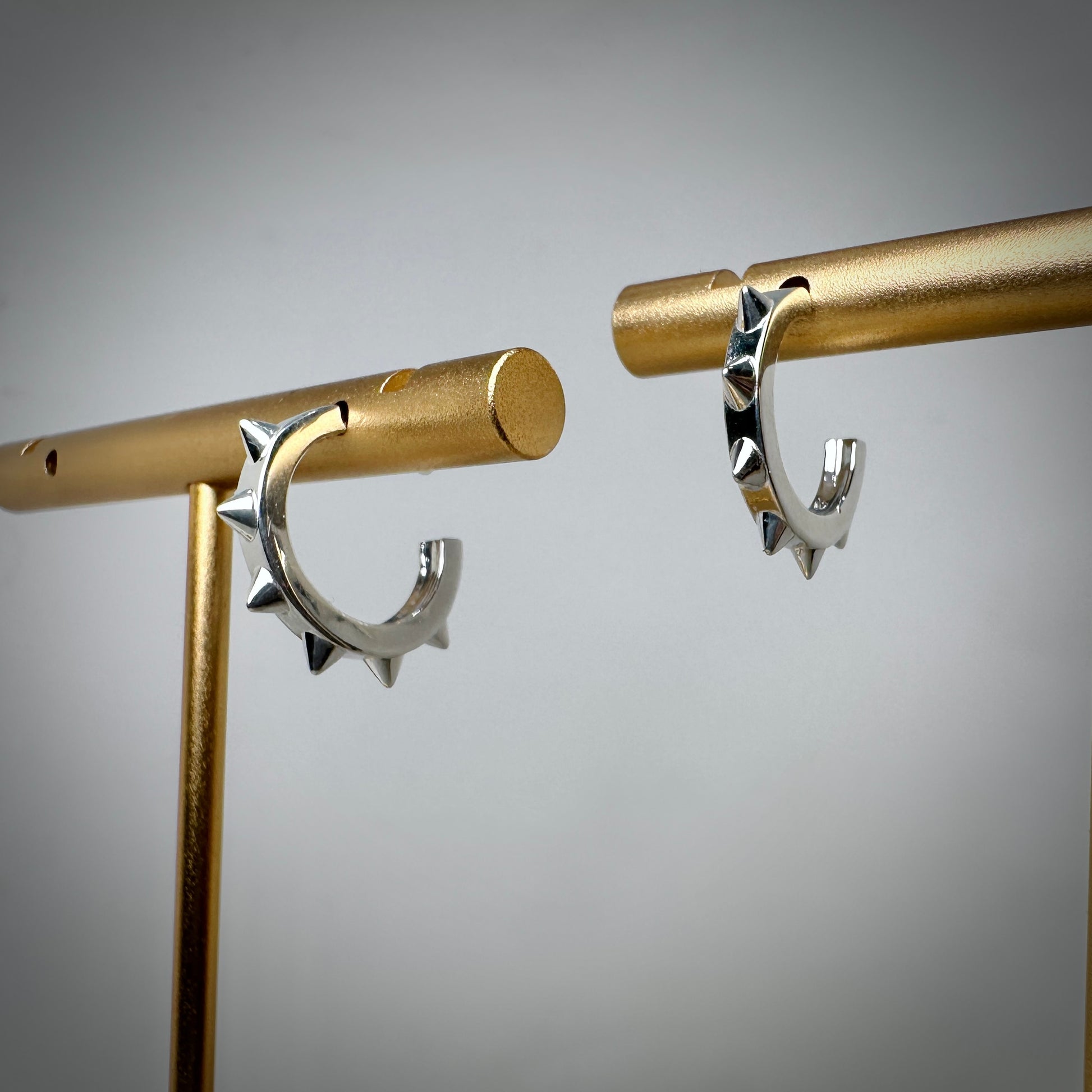 Elevate your everyday look with these Spiky Hoop Earrings crafted from sterling silver. Their edgy yet versatile design adds a bold statement to any outfit while remaining lightweight for comfortable all-day wear. Perfect for adding a touch of modern sophistication and unique style to your jewelry collection.