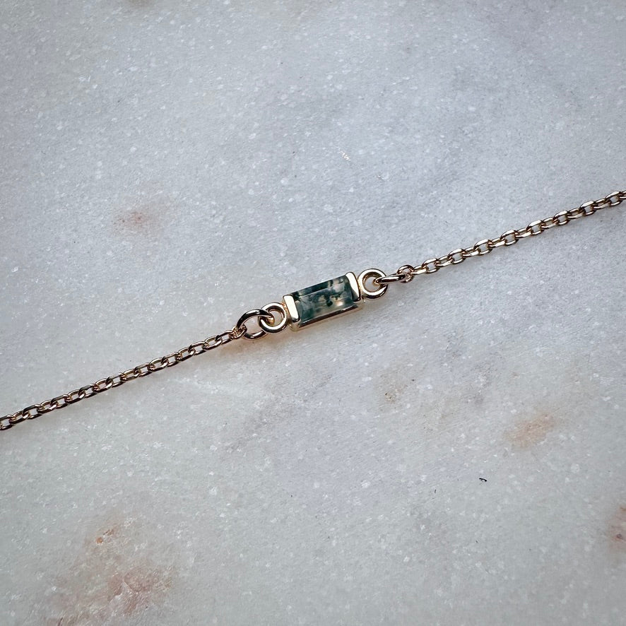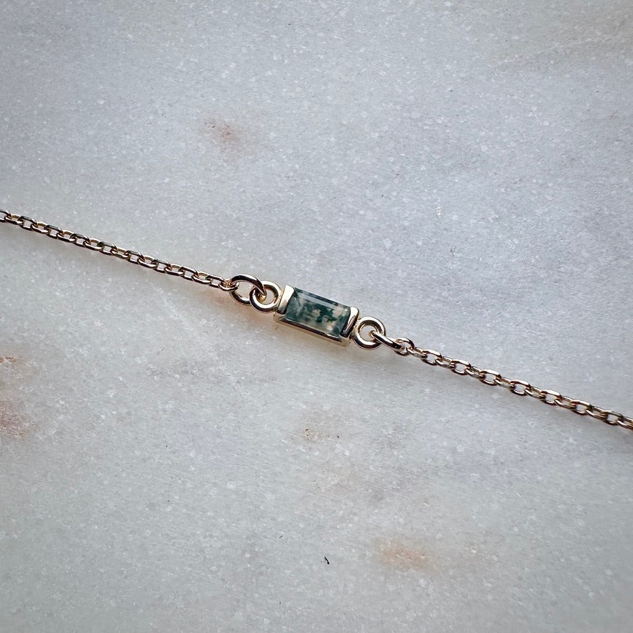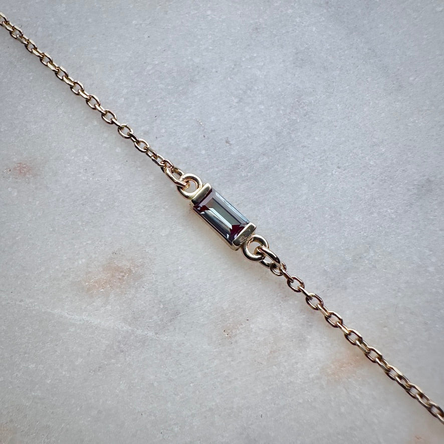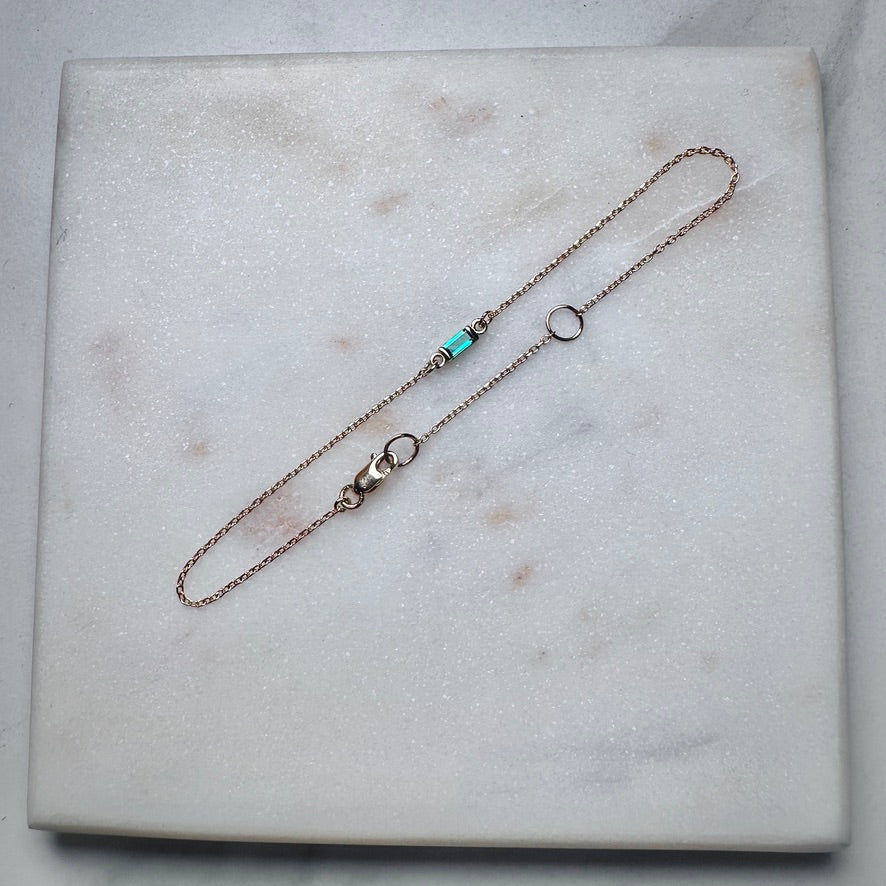 These stackable 14k yellow gold bracelets are ideal for layering with whatever you are feeling for the day! Each option features a gorgeous gemstone, so be sure to review all of the options and choose your favorite gem when adding it to your cart. The chain is fairly fine, but still strong enough for daily wear. It has a small lobster clasp that is proportional for how dainty the chain is. The overall length is 7 inches, and has an adjustment loop at 6 inches.