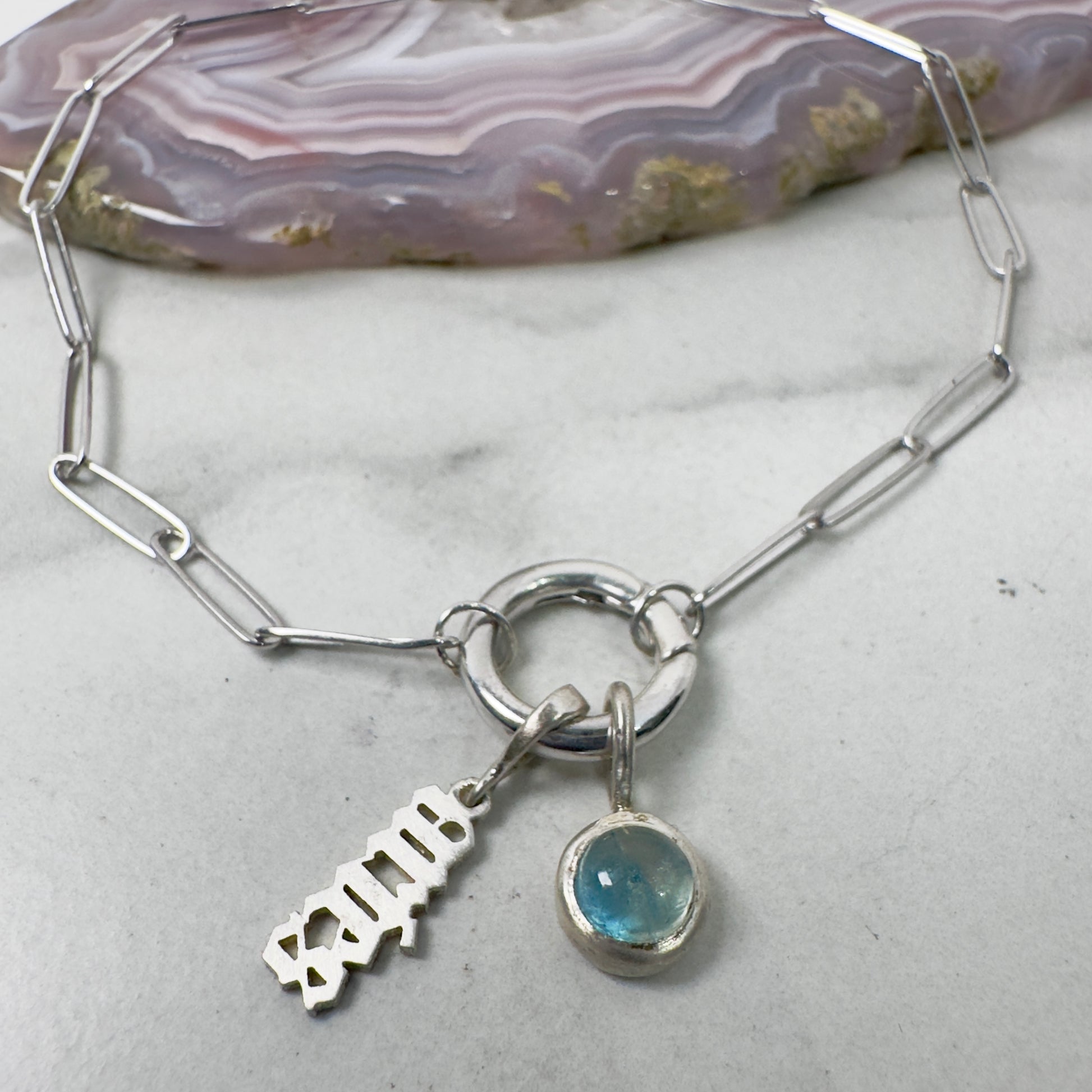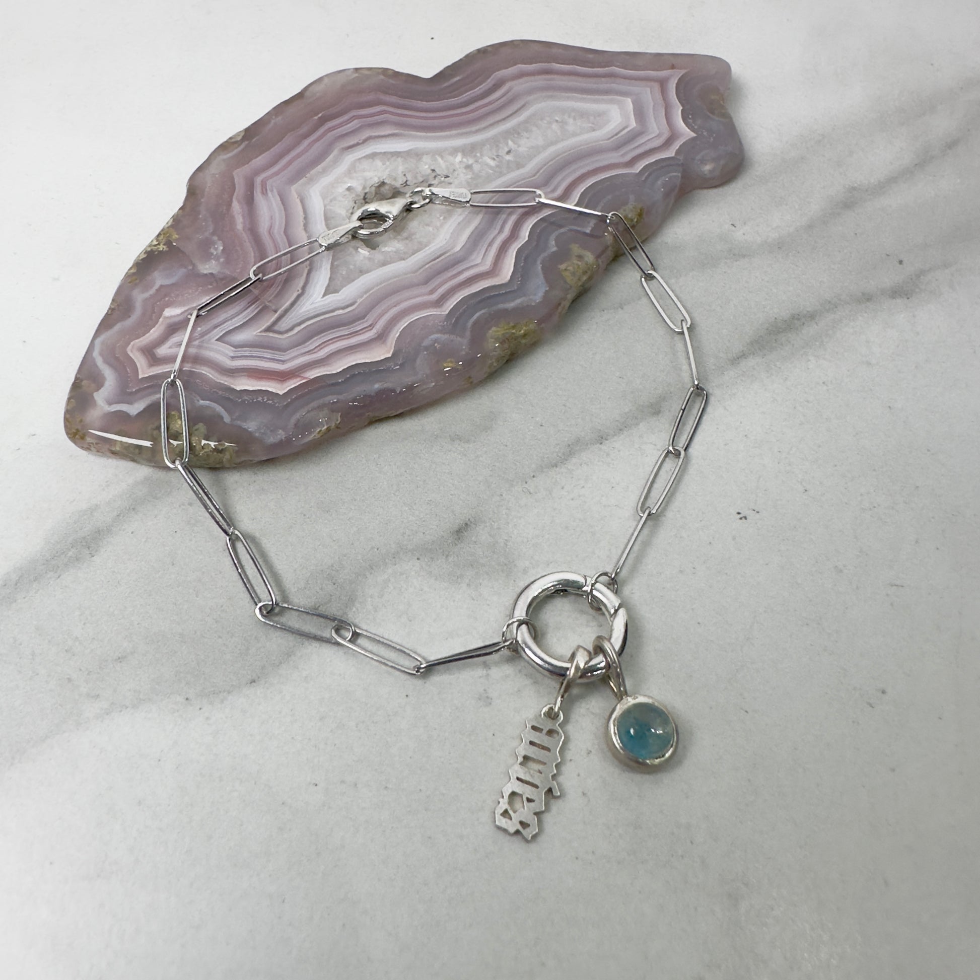 This playful paperclip link bracelet features a hinged bail at its center, perfect for holding any charm you choose for the day! It’s sized to fit various charm loops while still allowing you to layer multiple charms together. Available in solid sterling silver and solid 14k yellow gold, it can also be custom ordered in other gold finishes. Interested in 14k rose or white gold? Reach out to us to create your personalized piece!